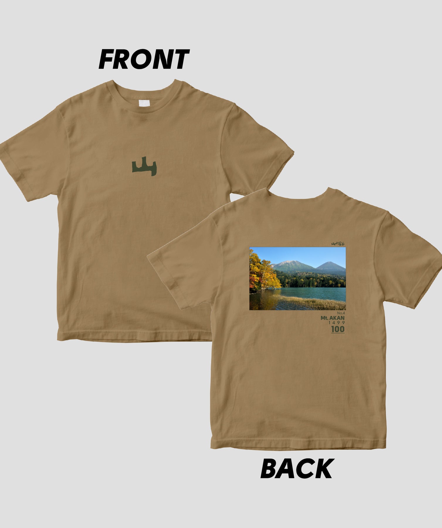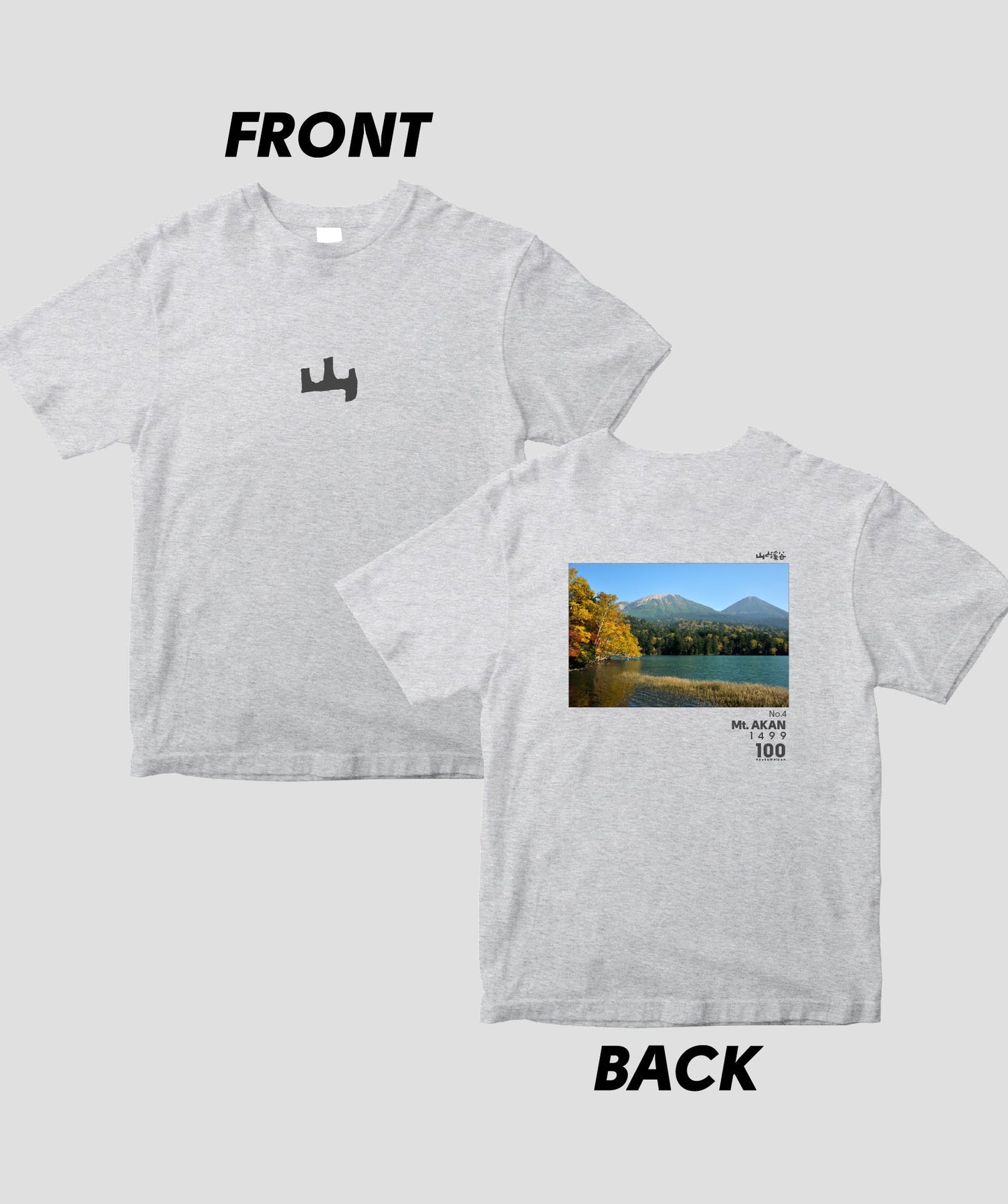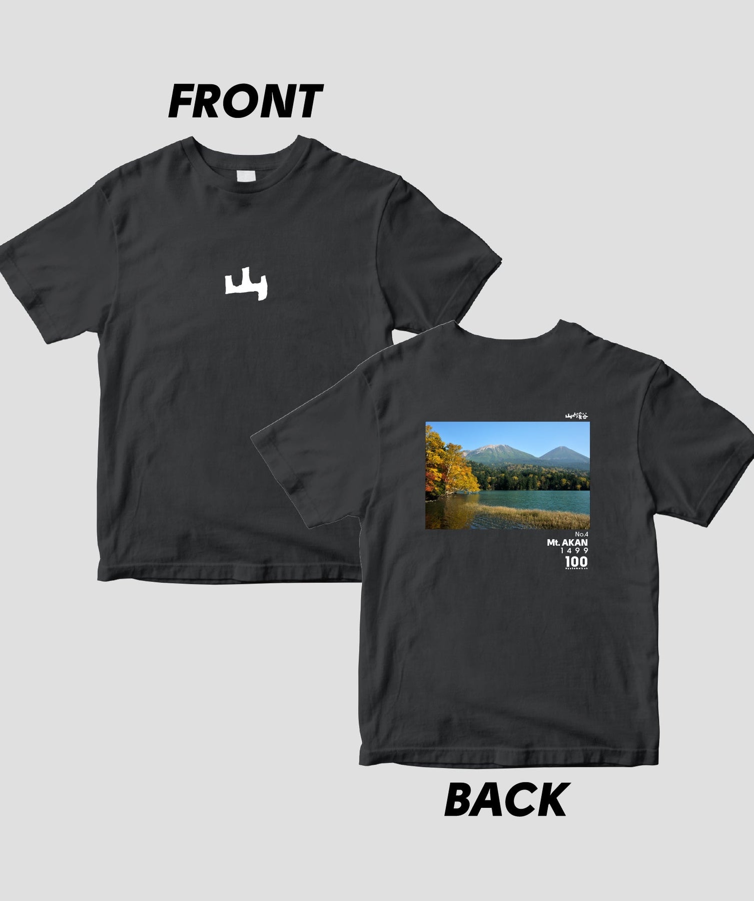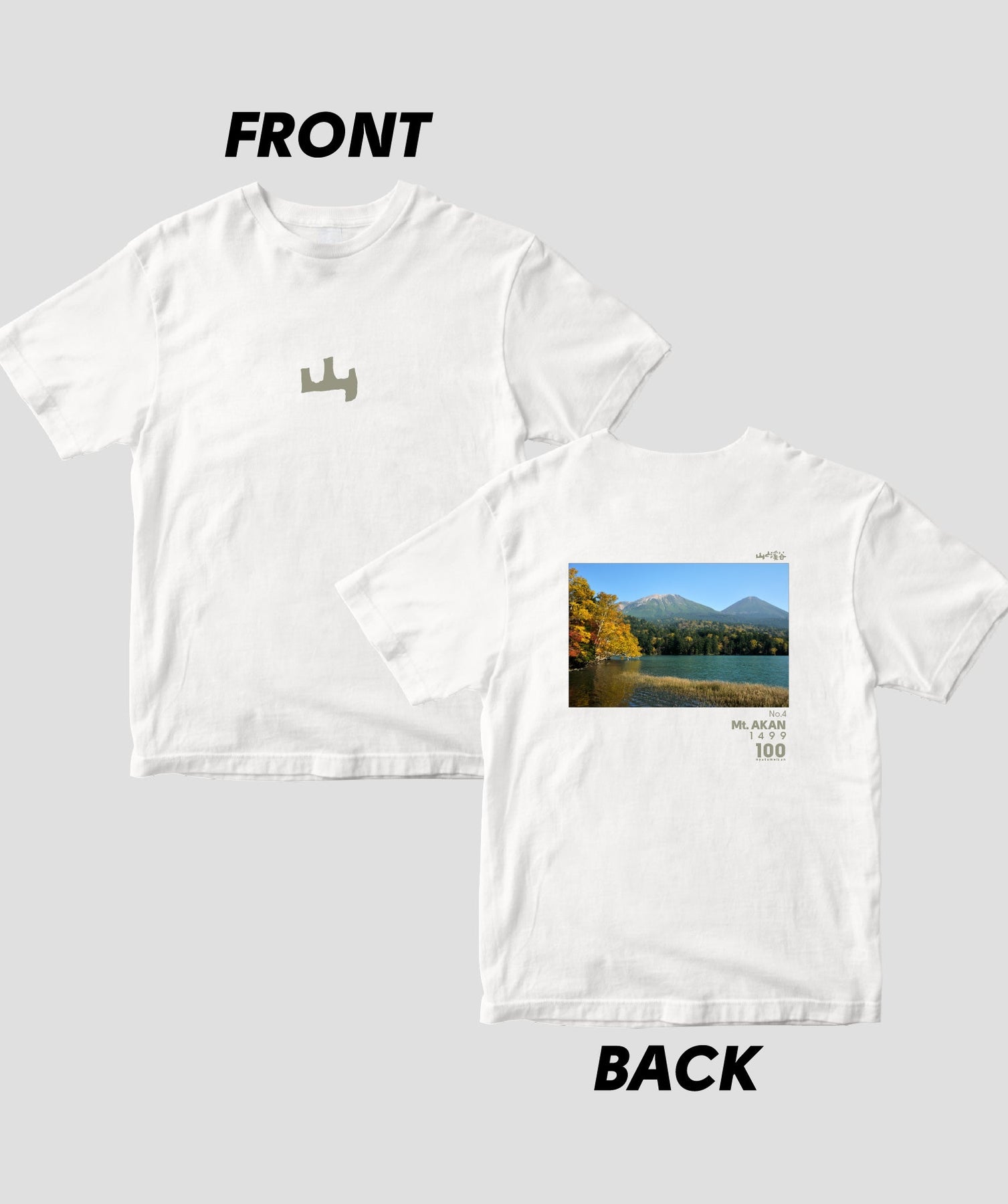 日本百名山に選ばれた100座の写真を背面に入れた、山と溪谷社監修の100種類のTシャツです。