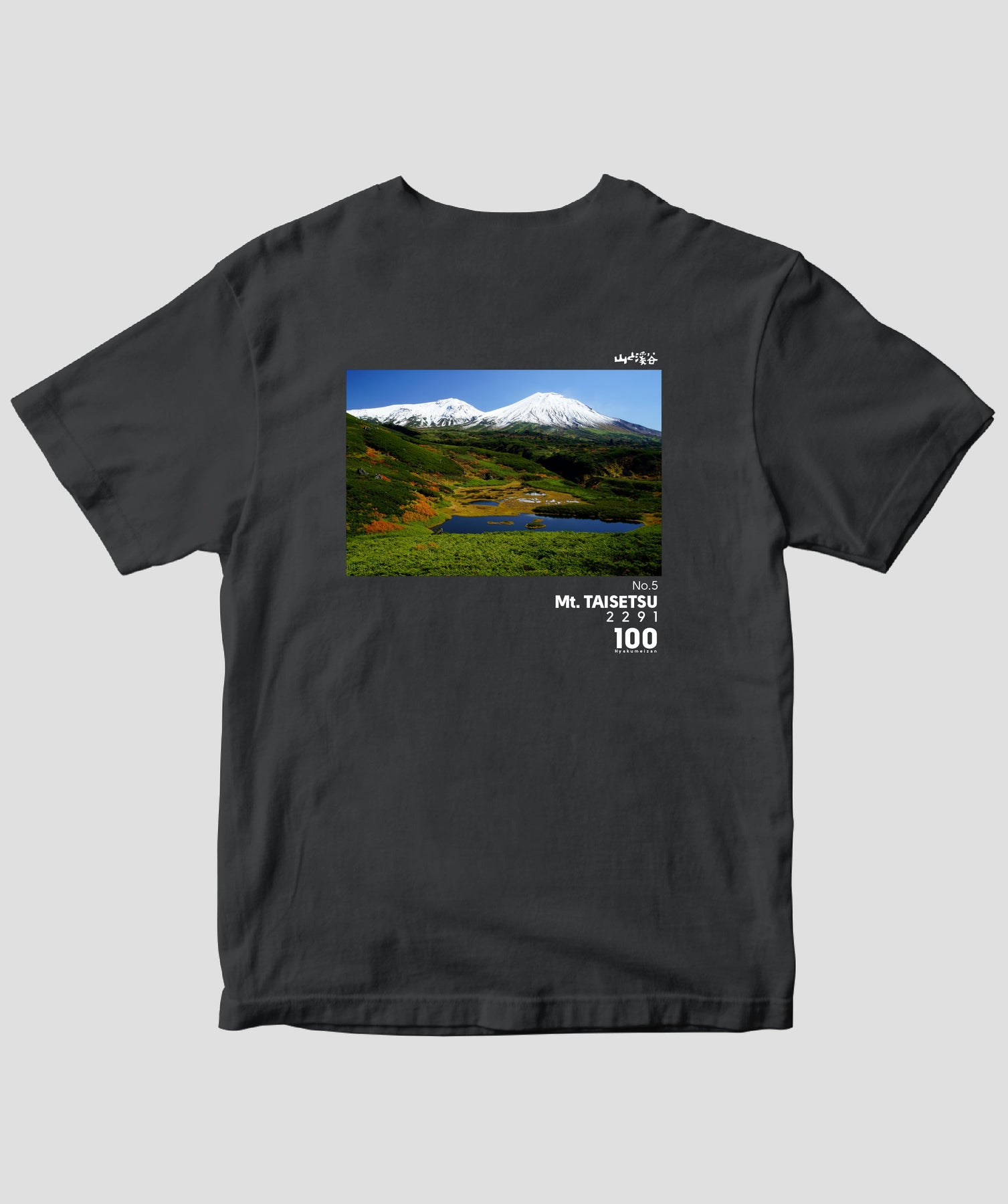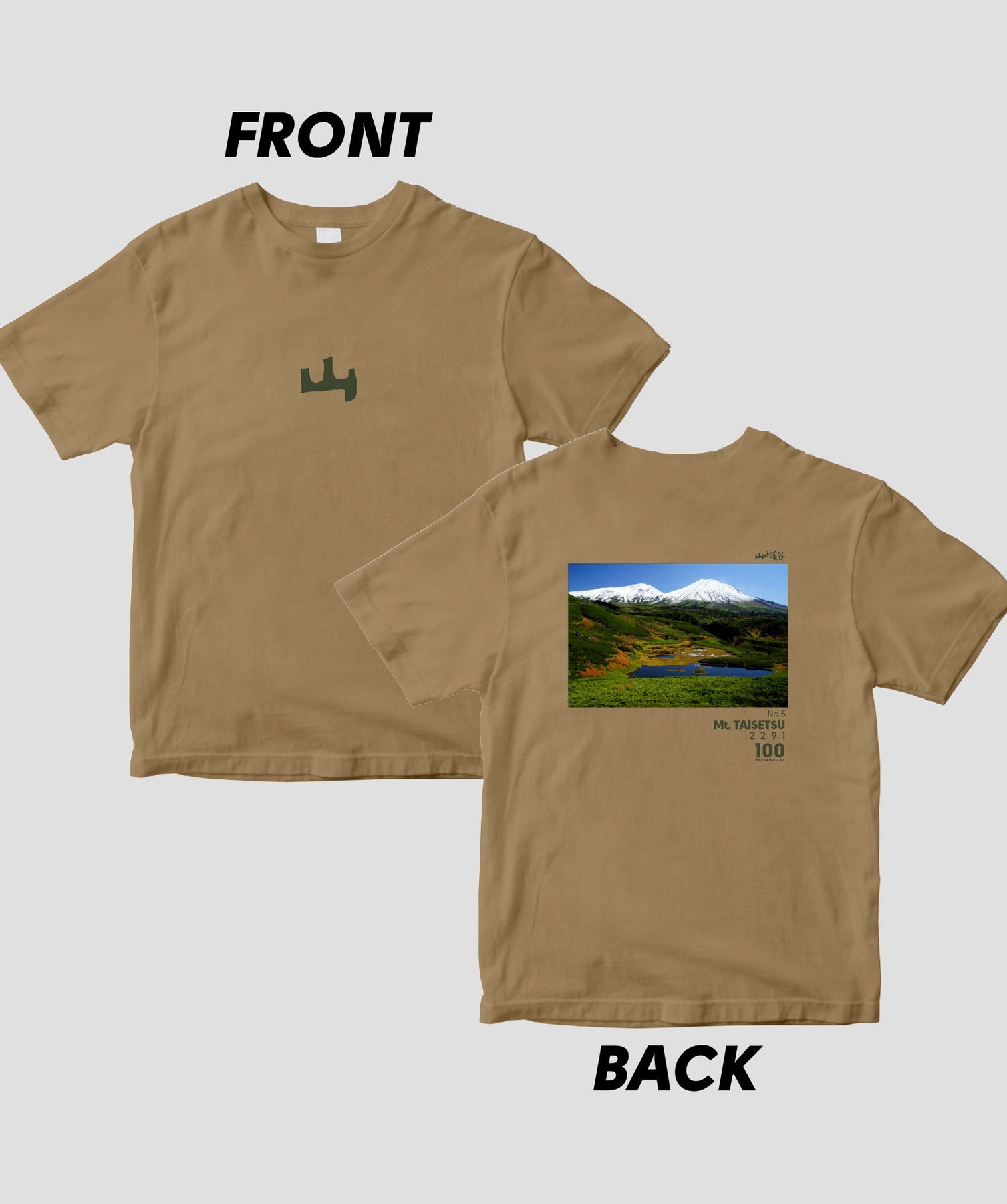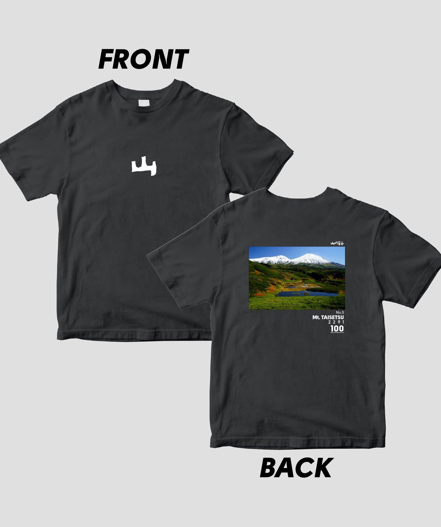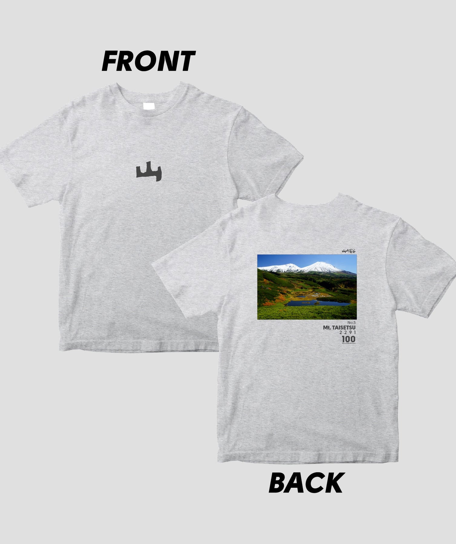 日本百名山に選ばれた100座の写真を背面に入れた、山と溪谷社監修の100種類のTシャツです。