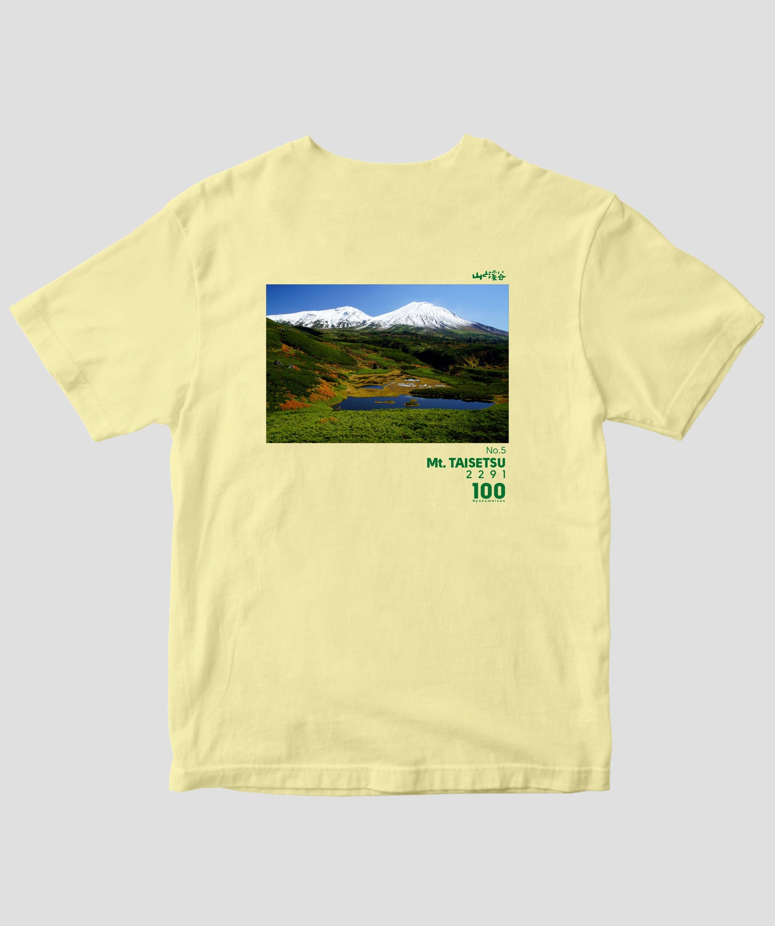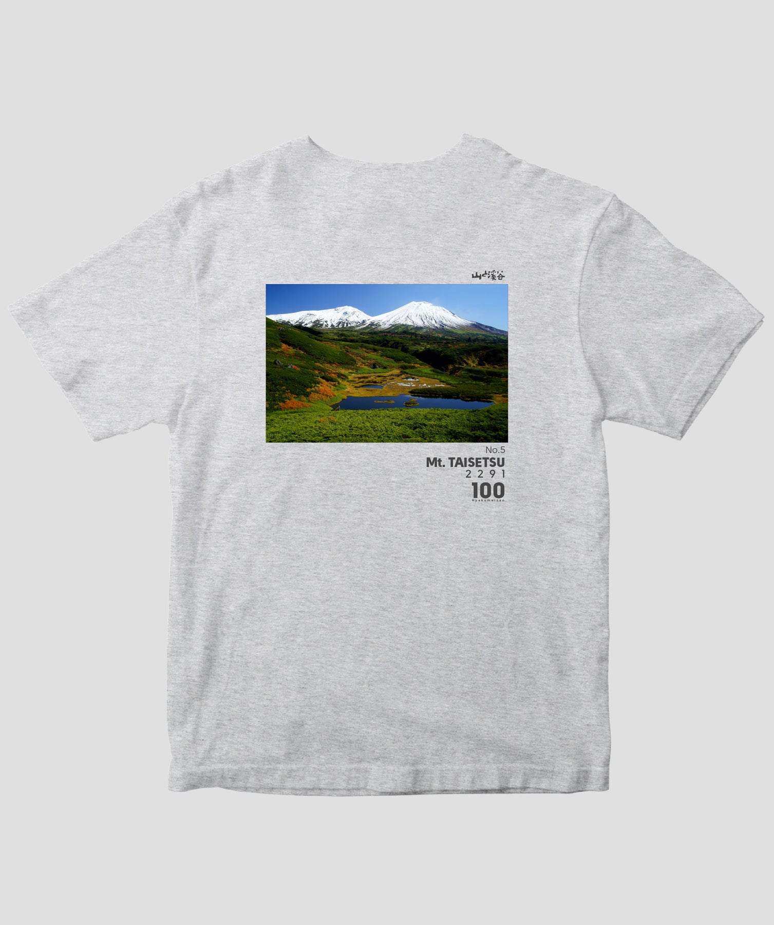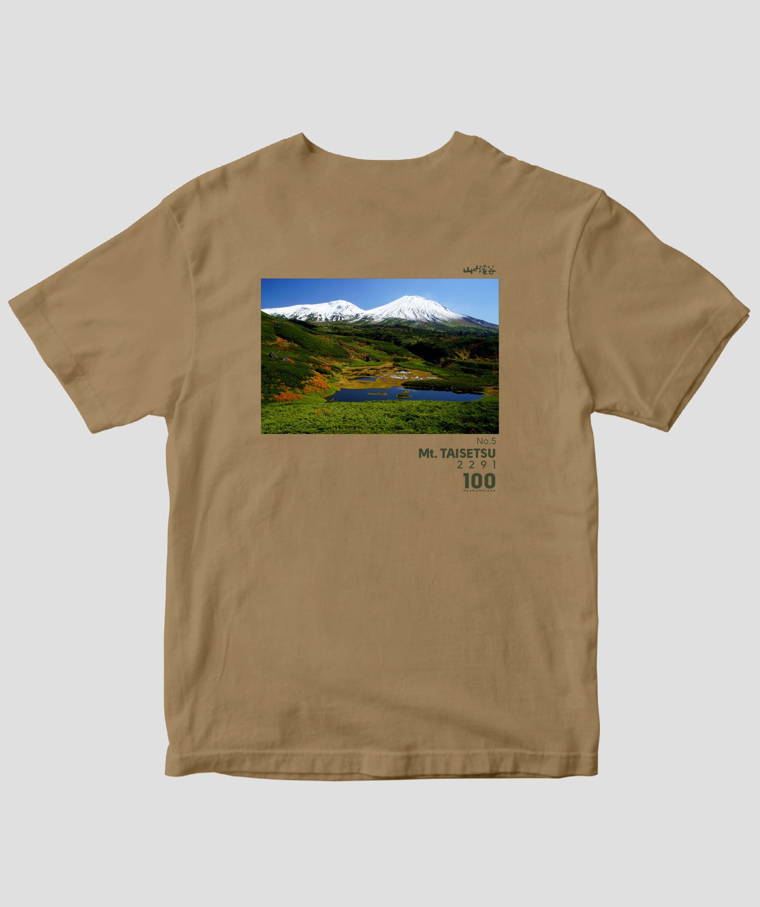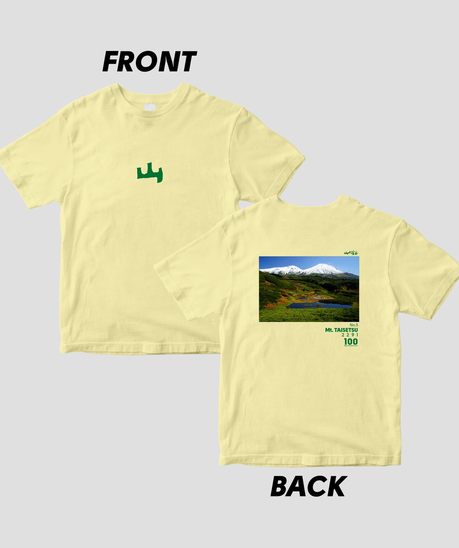 日本百名山に選ばれた100座の写真を背面に入れた、山と溪谷社監修の100種類のTシャツです。