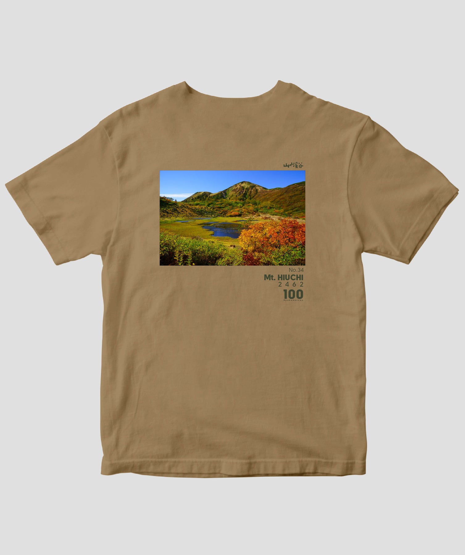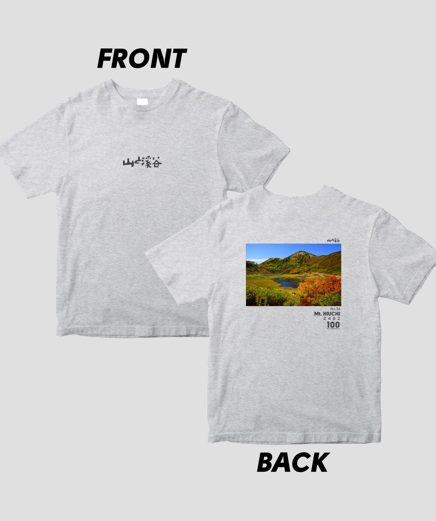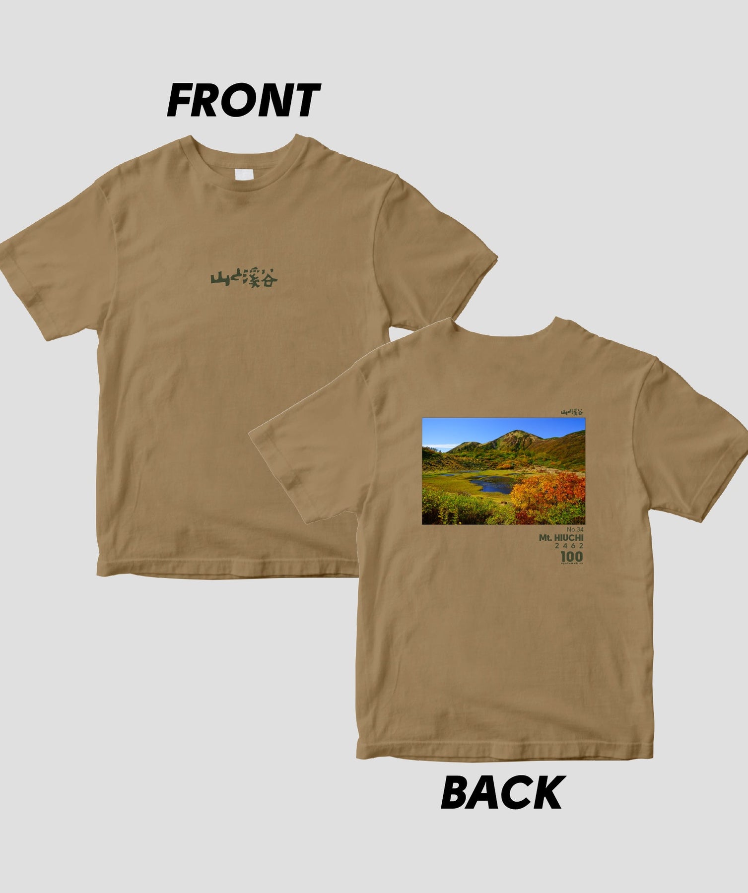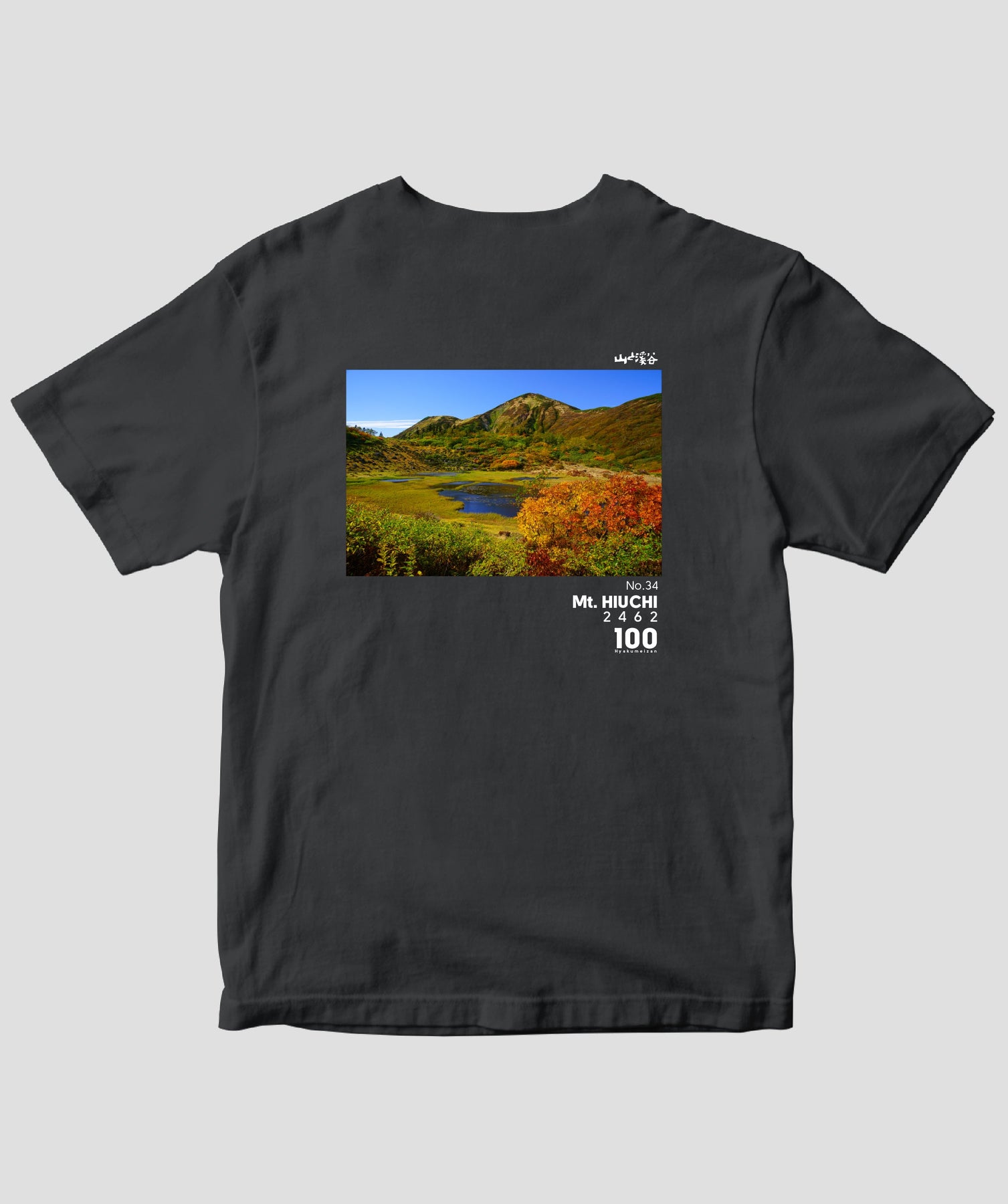 日本百名山に選ばれた100座の写真を背面に入れた、山と溪谷社監修の100種類のTシャツです。