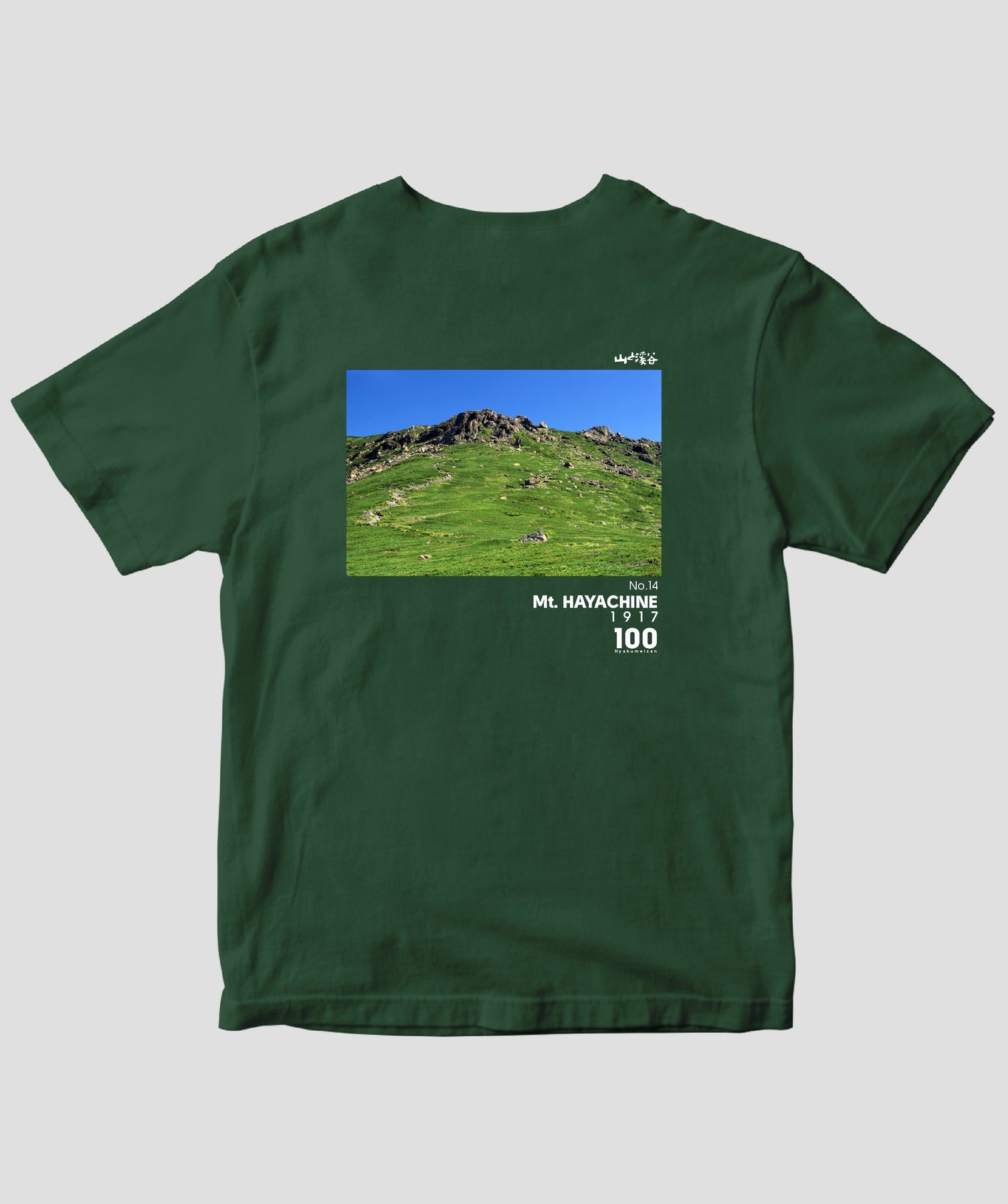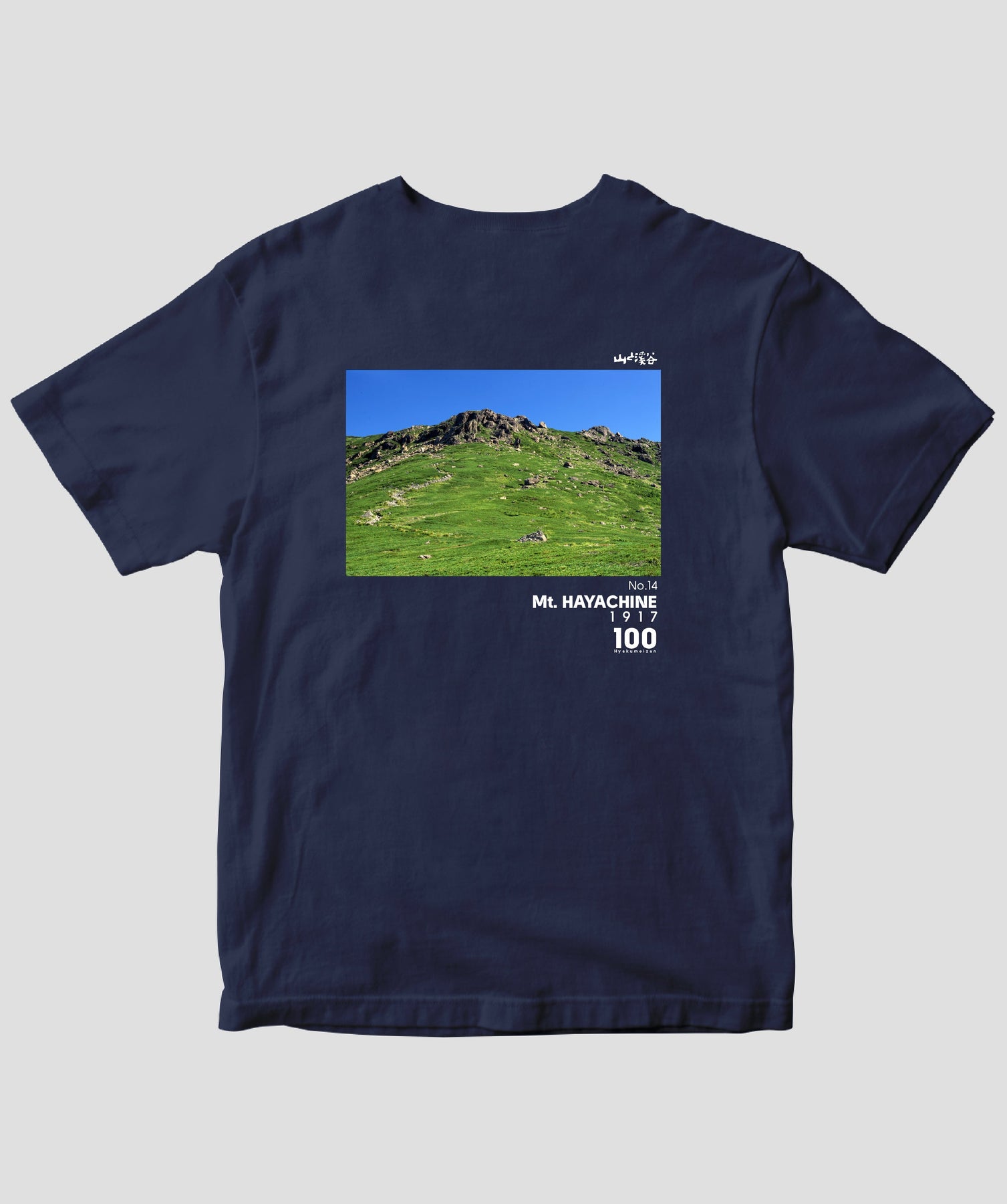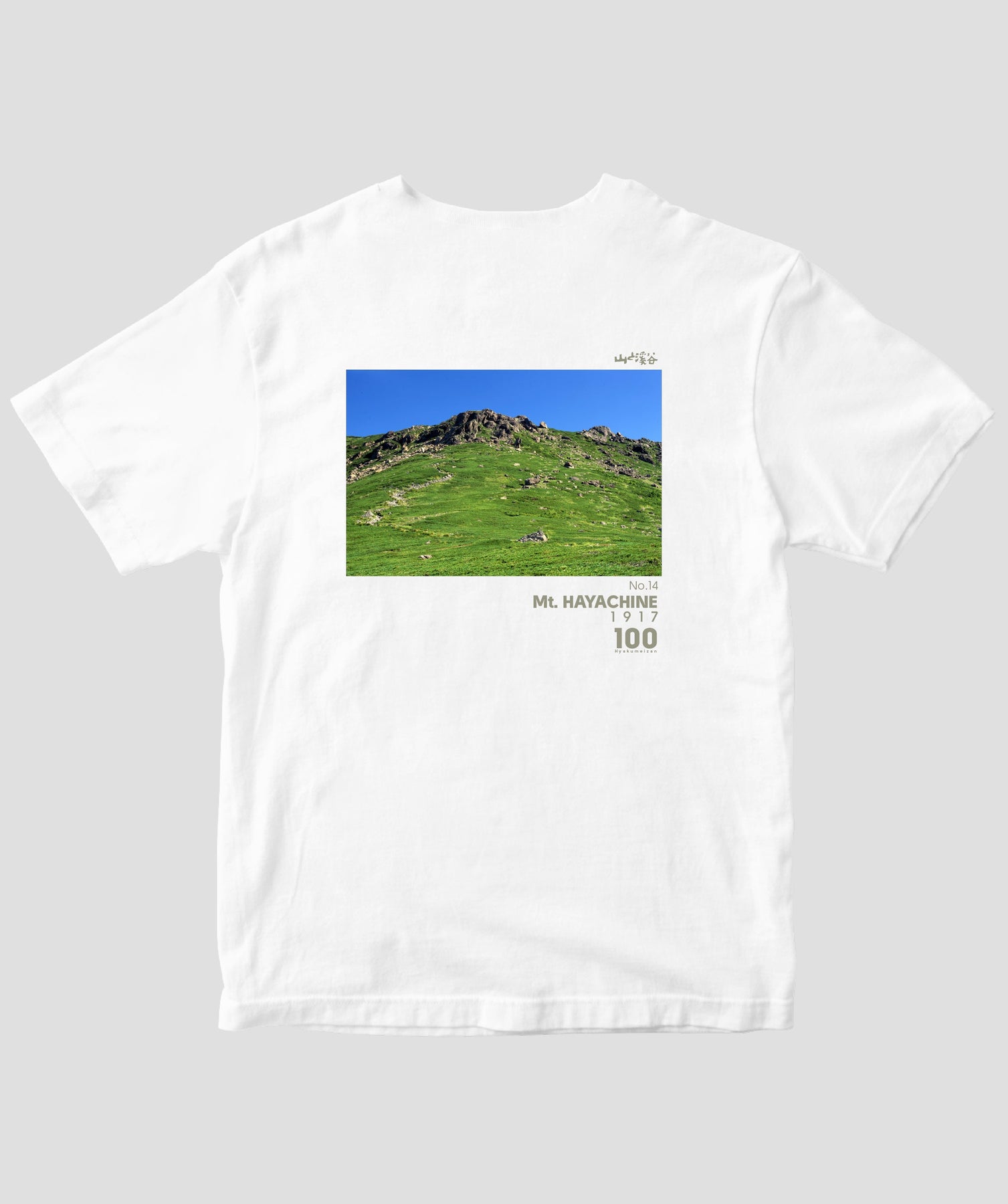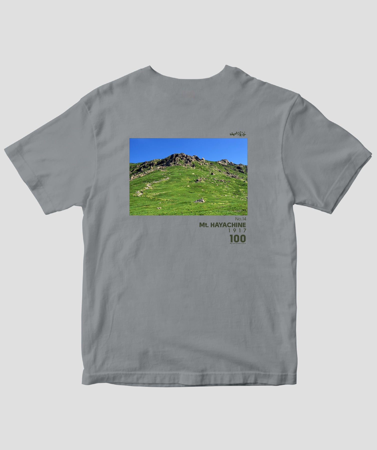 日本百名山に選ばれた100座の写真を背面に入れた、山と溪谷社監修の100種類のTシャツです。
