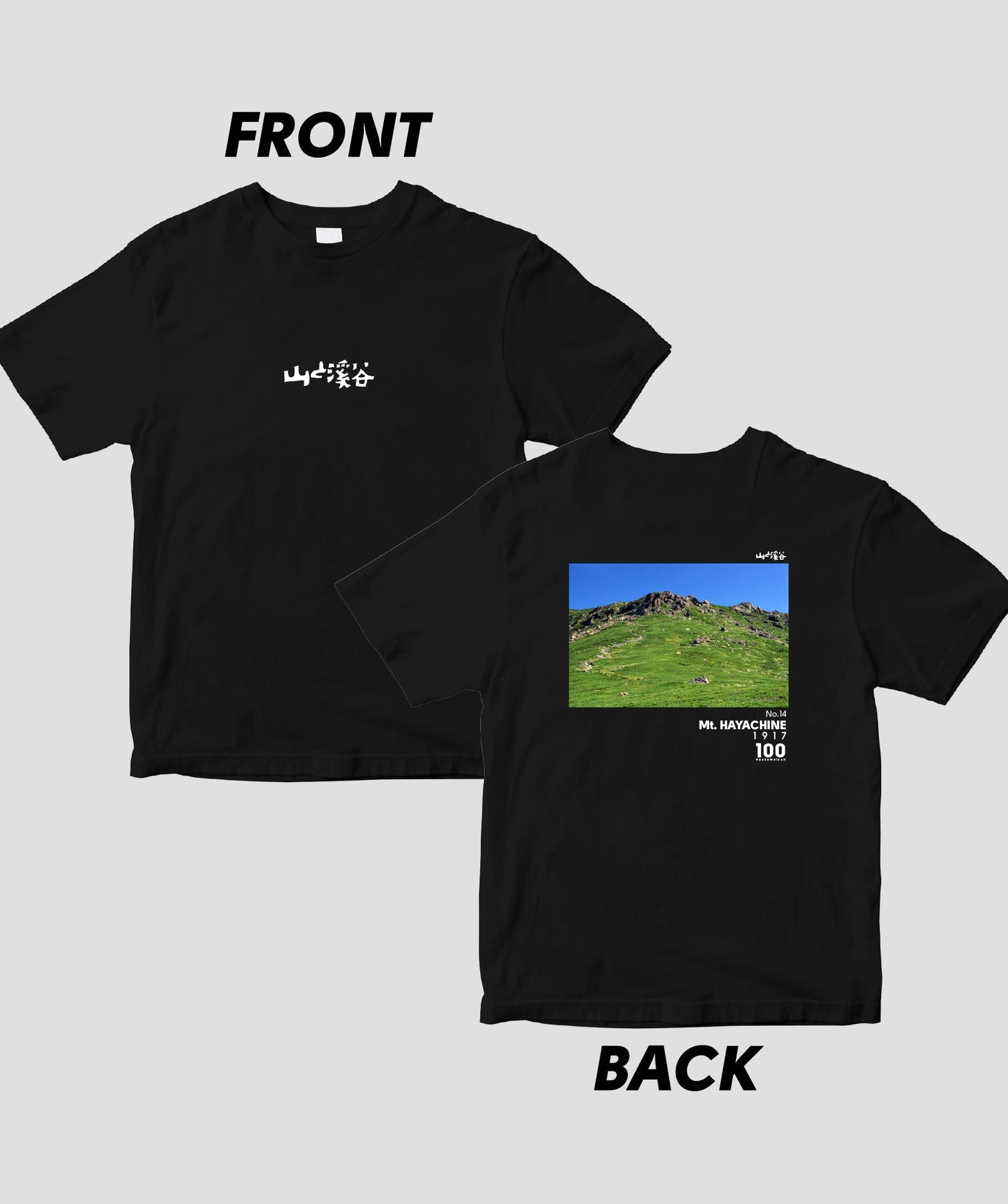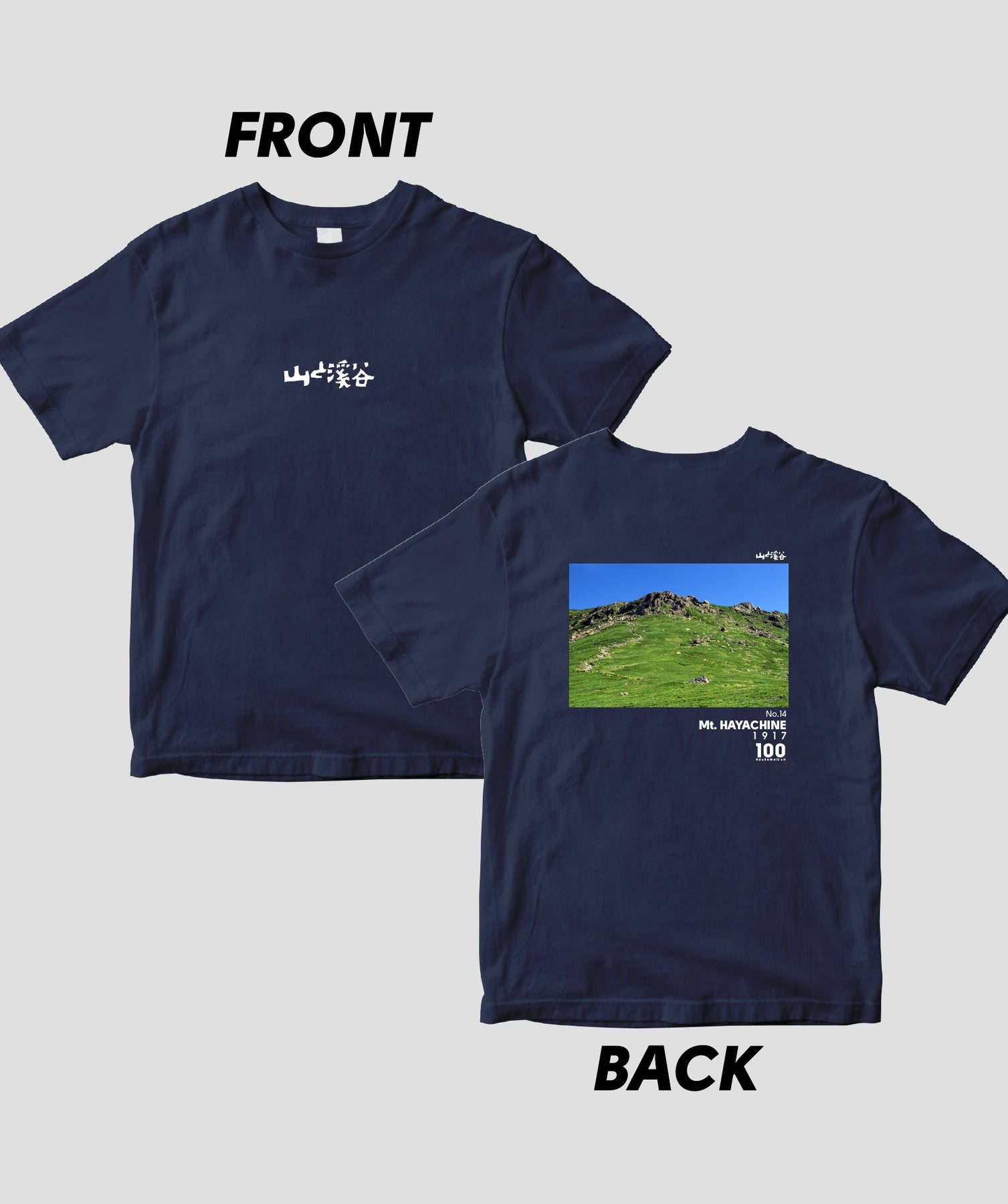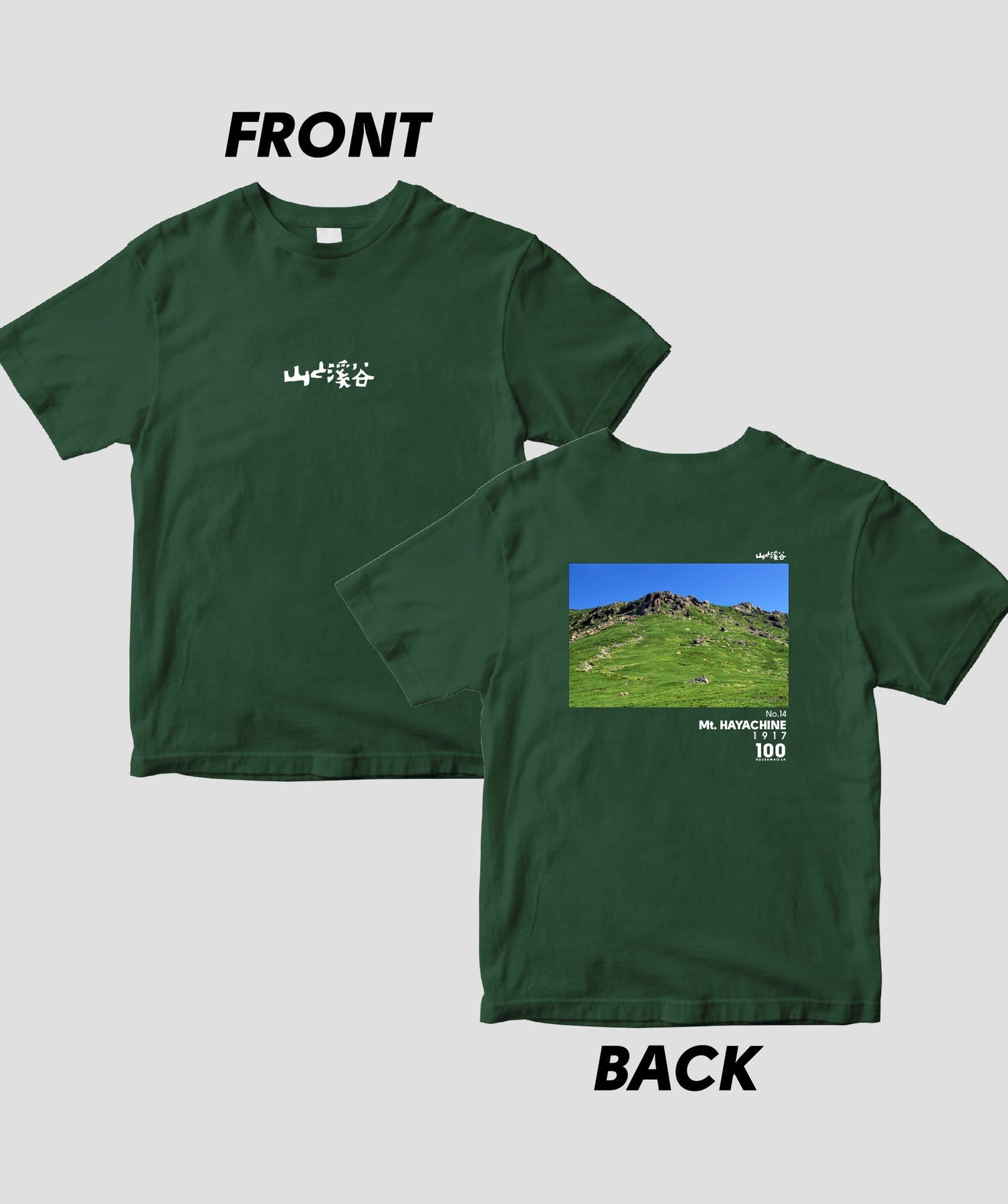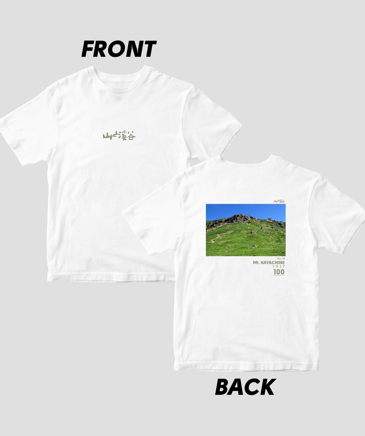 日本百名山に選ばれた100座の写真を背面に入れた、山と溪谷社監修の100種類のTシャツです。
