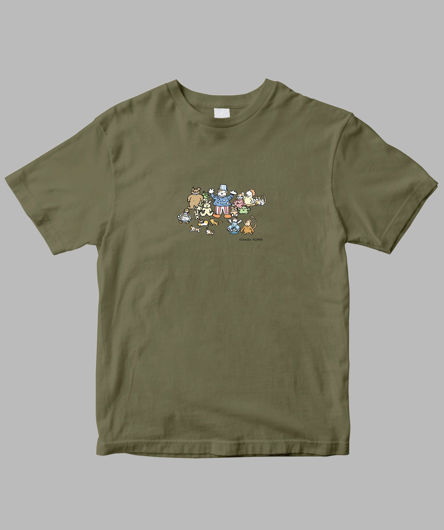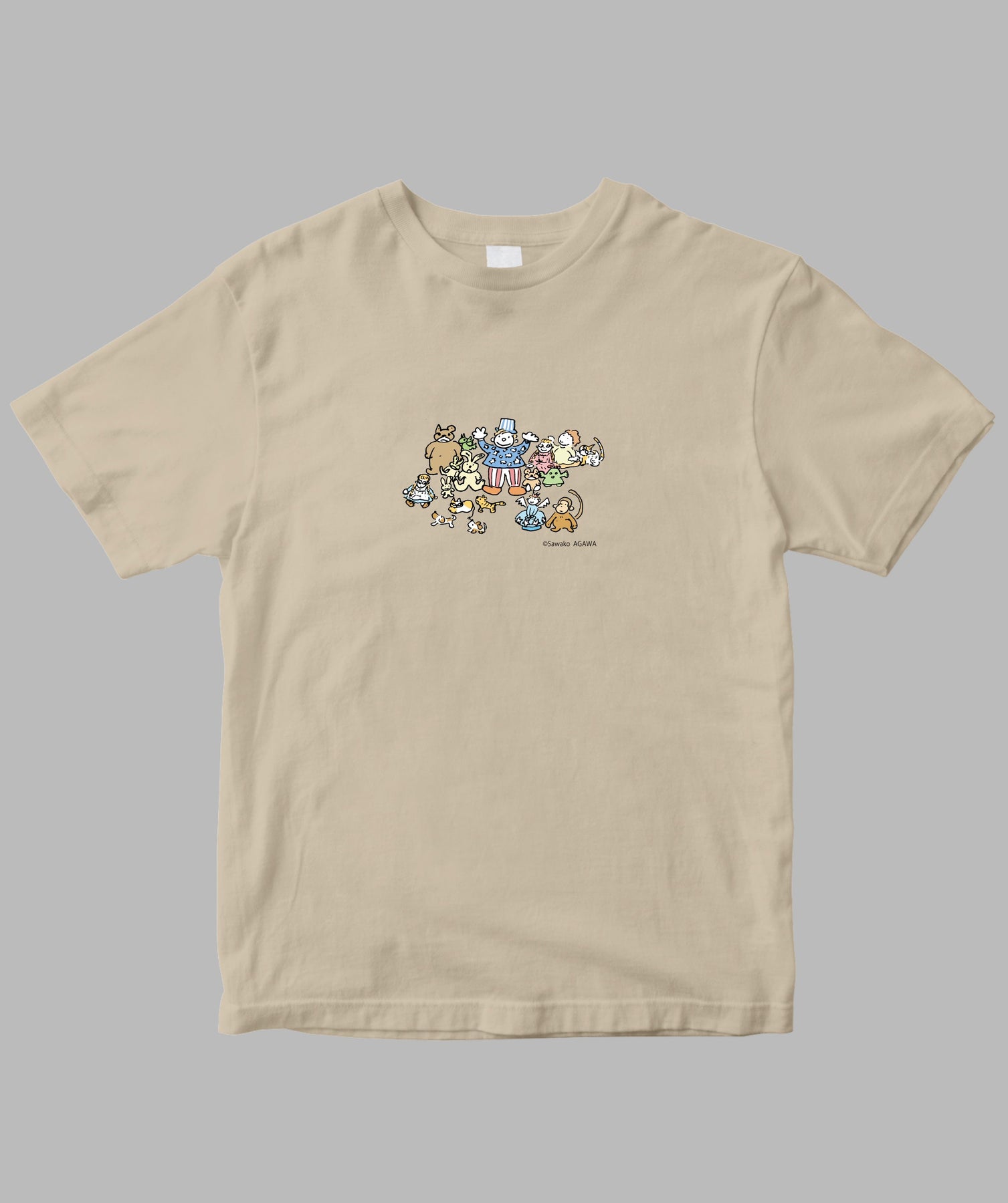 2023年秋に『北國新聞』などから連載が開始されたエッセイ集『だいたいしあわせ』から、本人のイラストをTシャツにしました。こちらは「人形の家」のイラストをプリント。