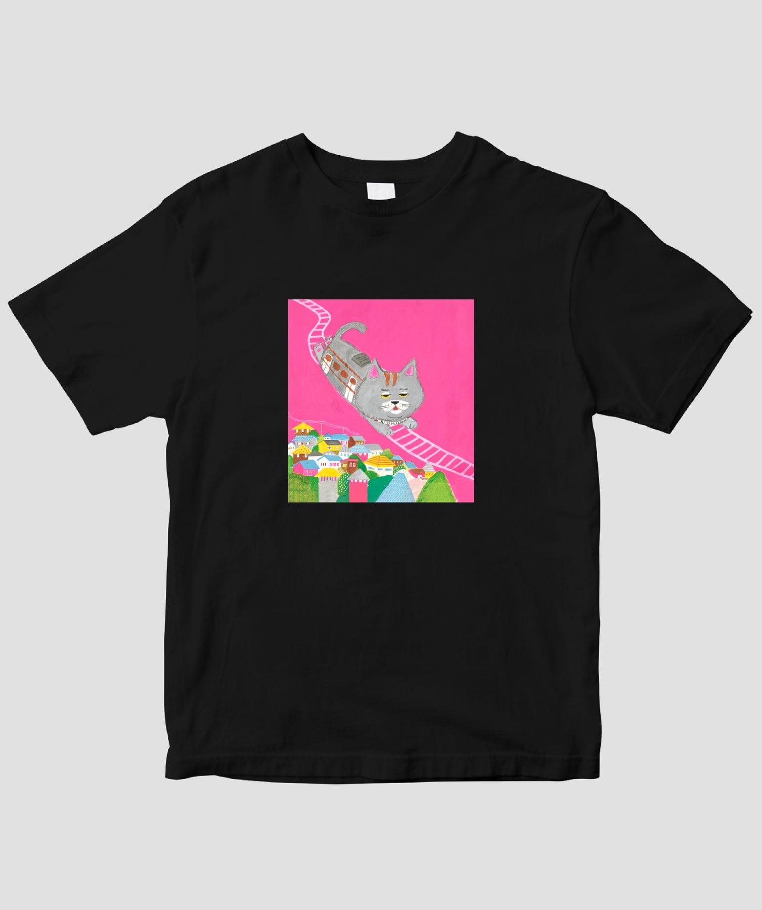 ・濃色Tシャツにはインク定着のため、前処理加工ならびに熱処理(プレス)をしています。シミのようなものや、四角いプレス機の跡が残る場合がありますが、着用前に洗濯していただければ改善されます。