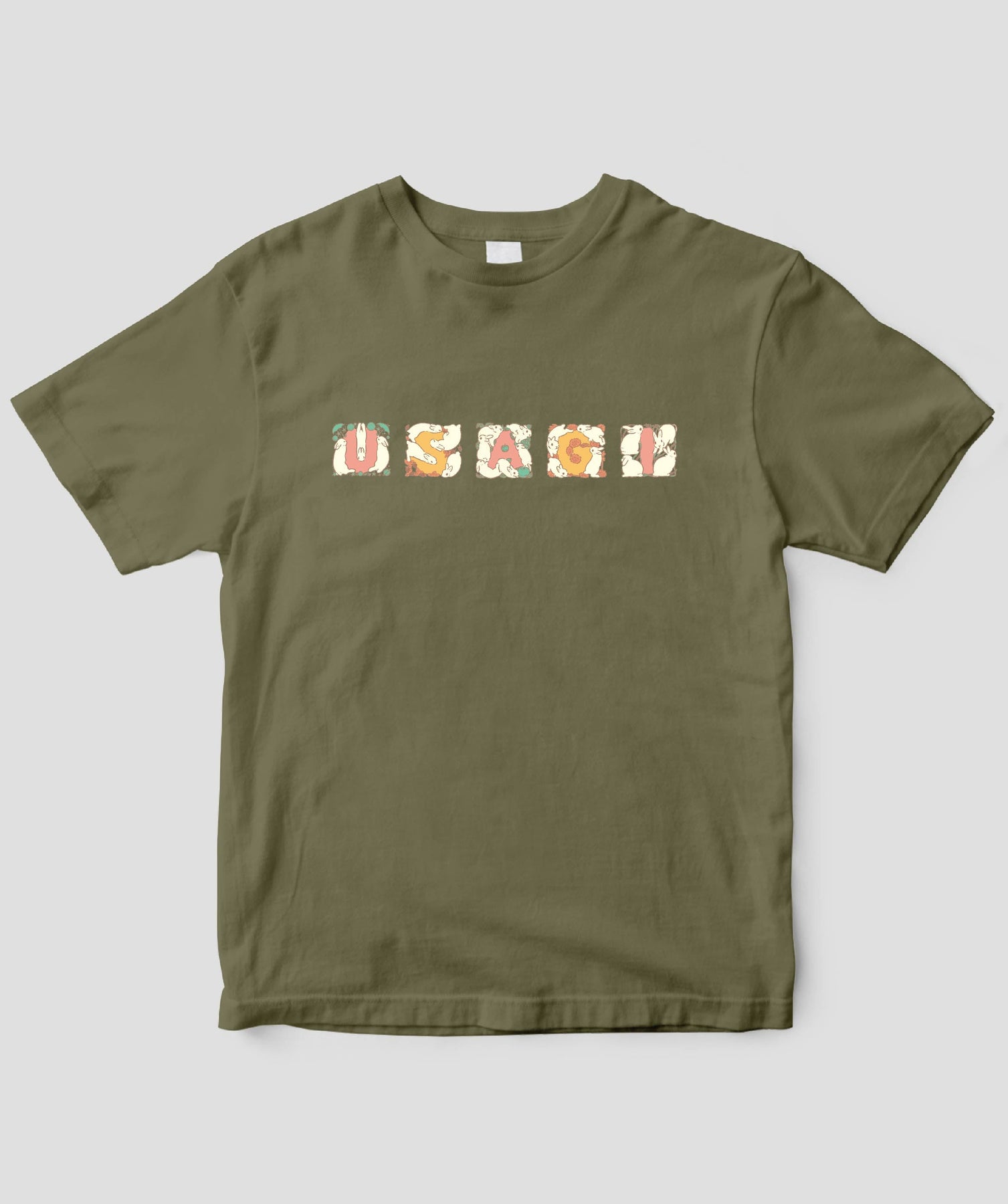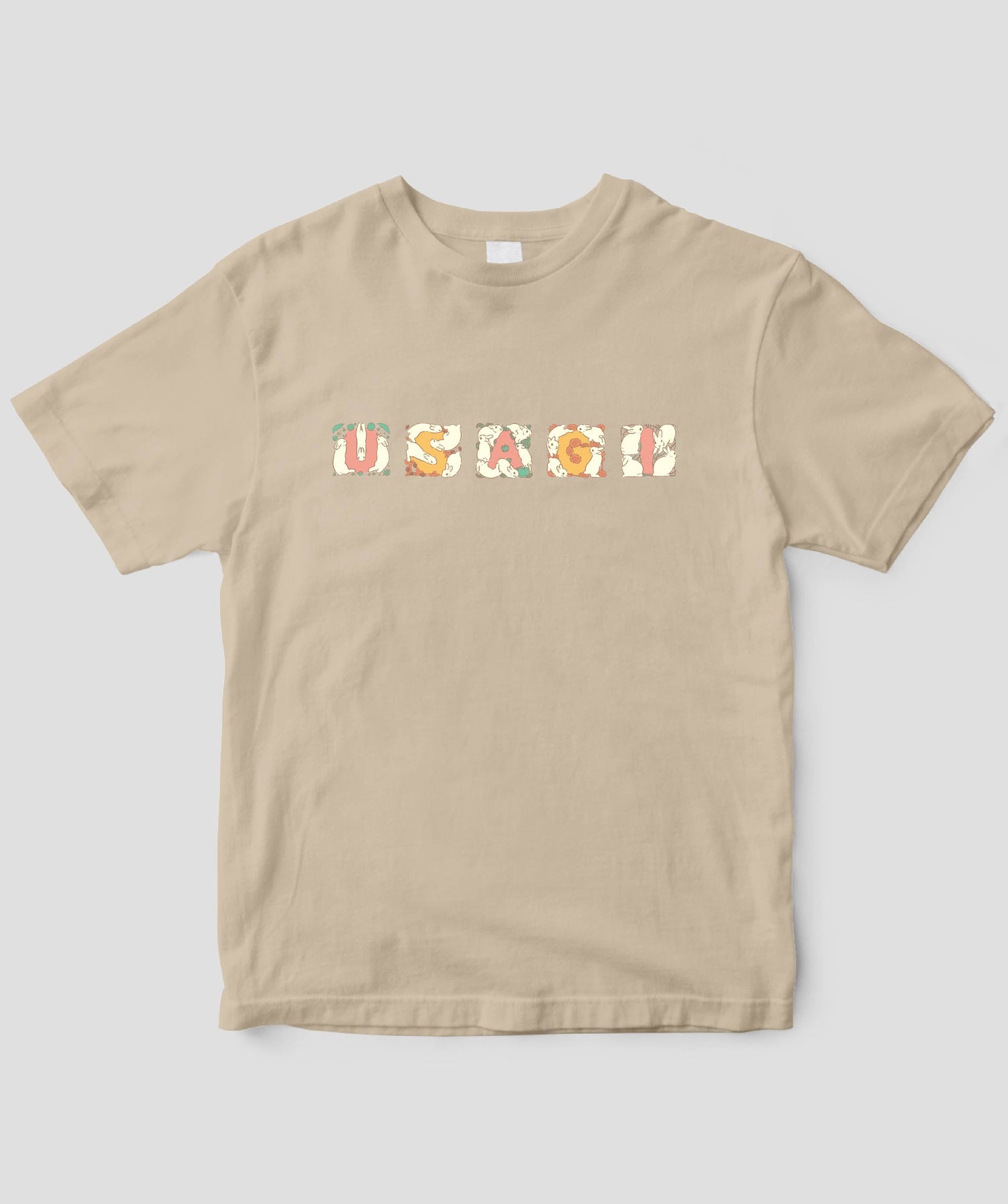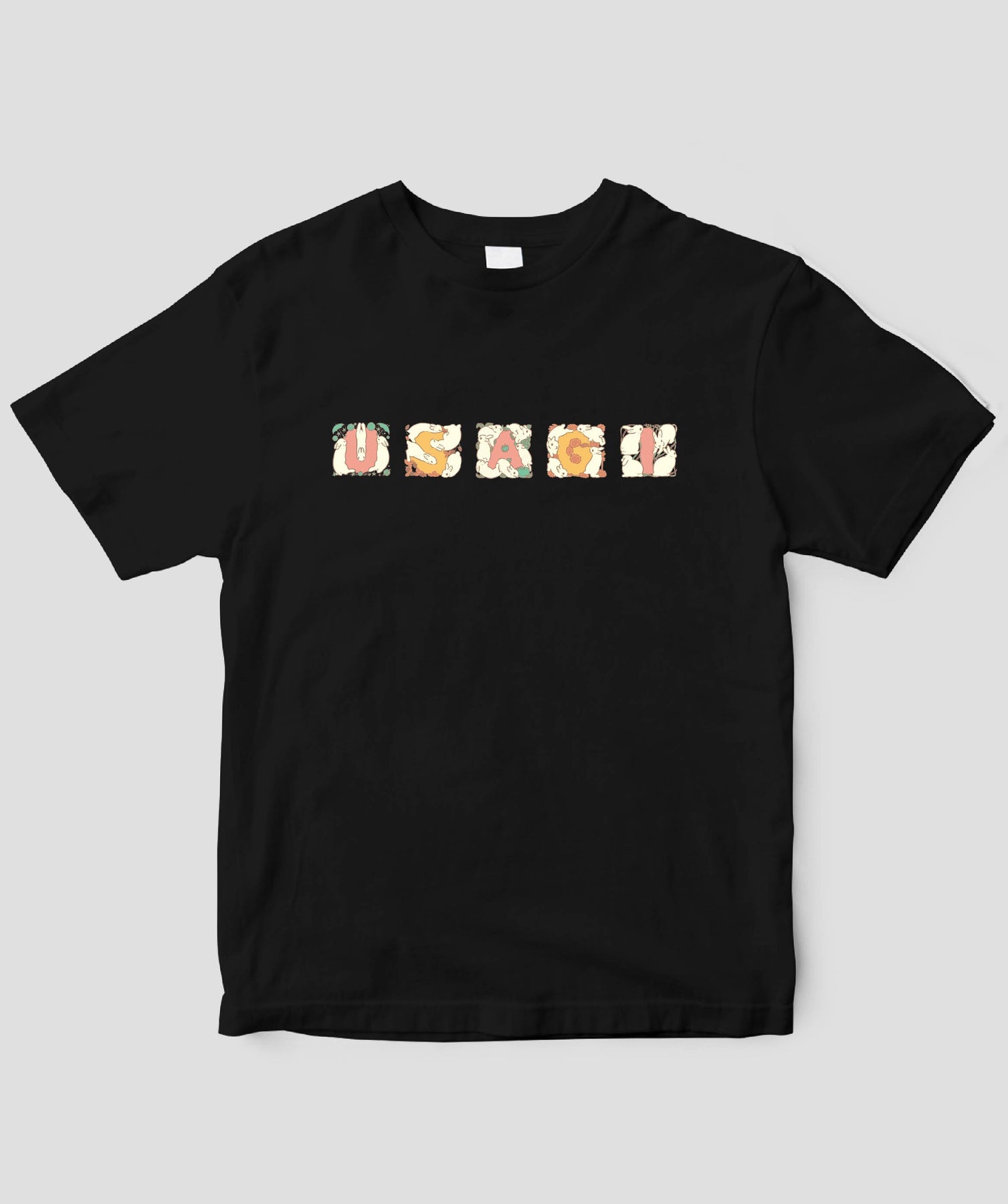 うさぎが集まってできた飾り文字で“USAGI”と綴ったTシャツ。