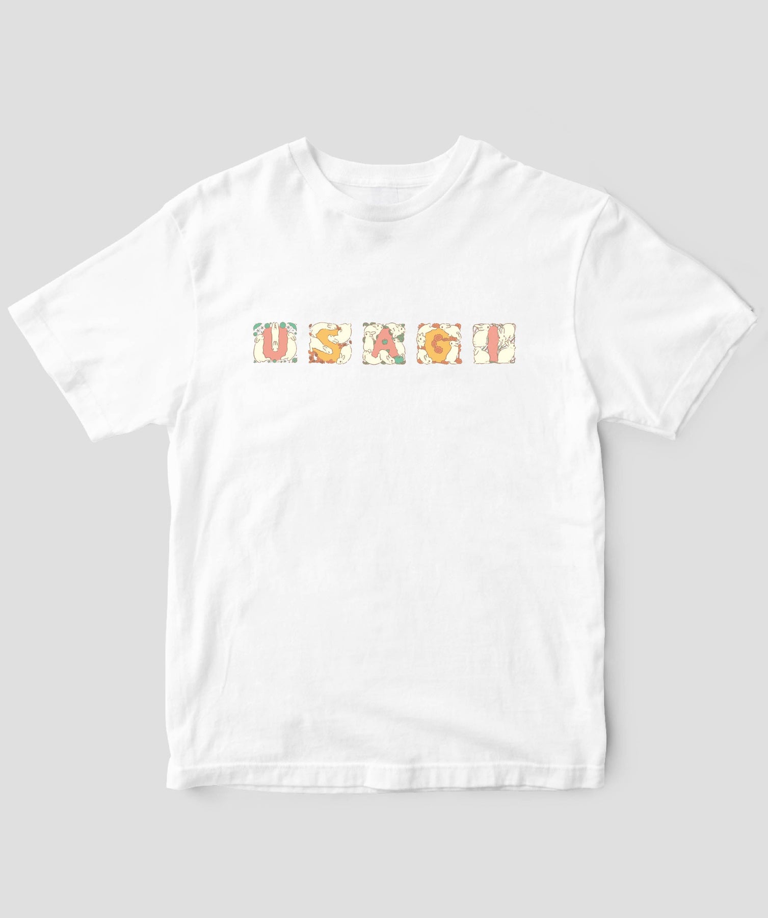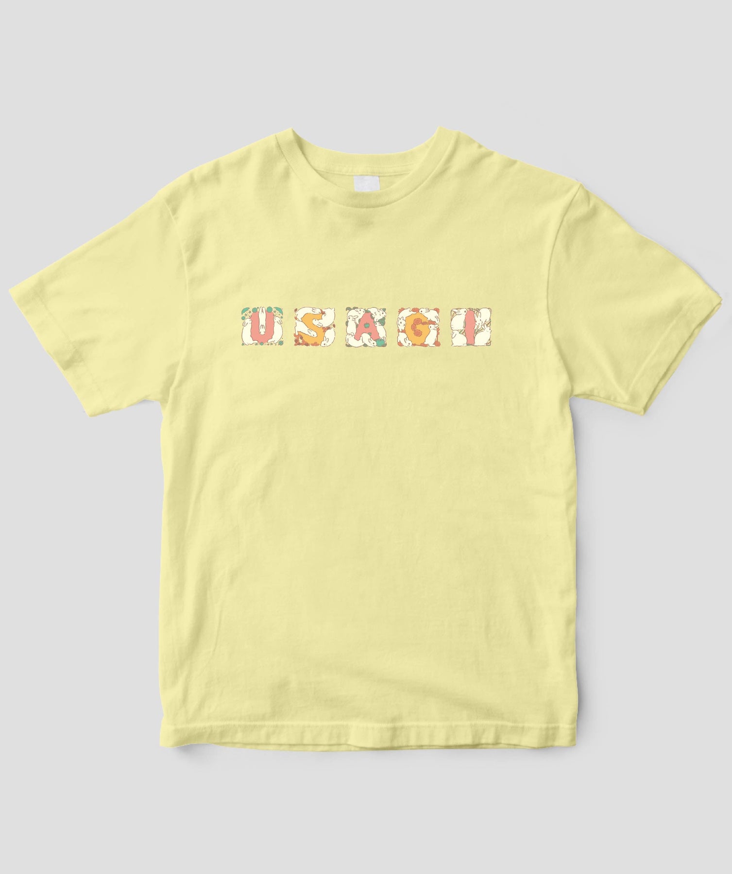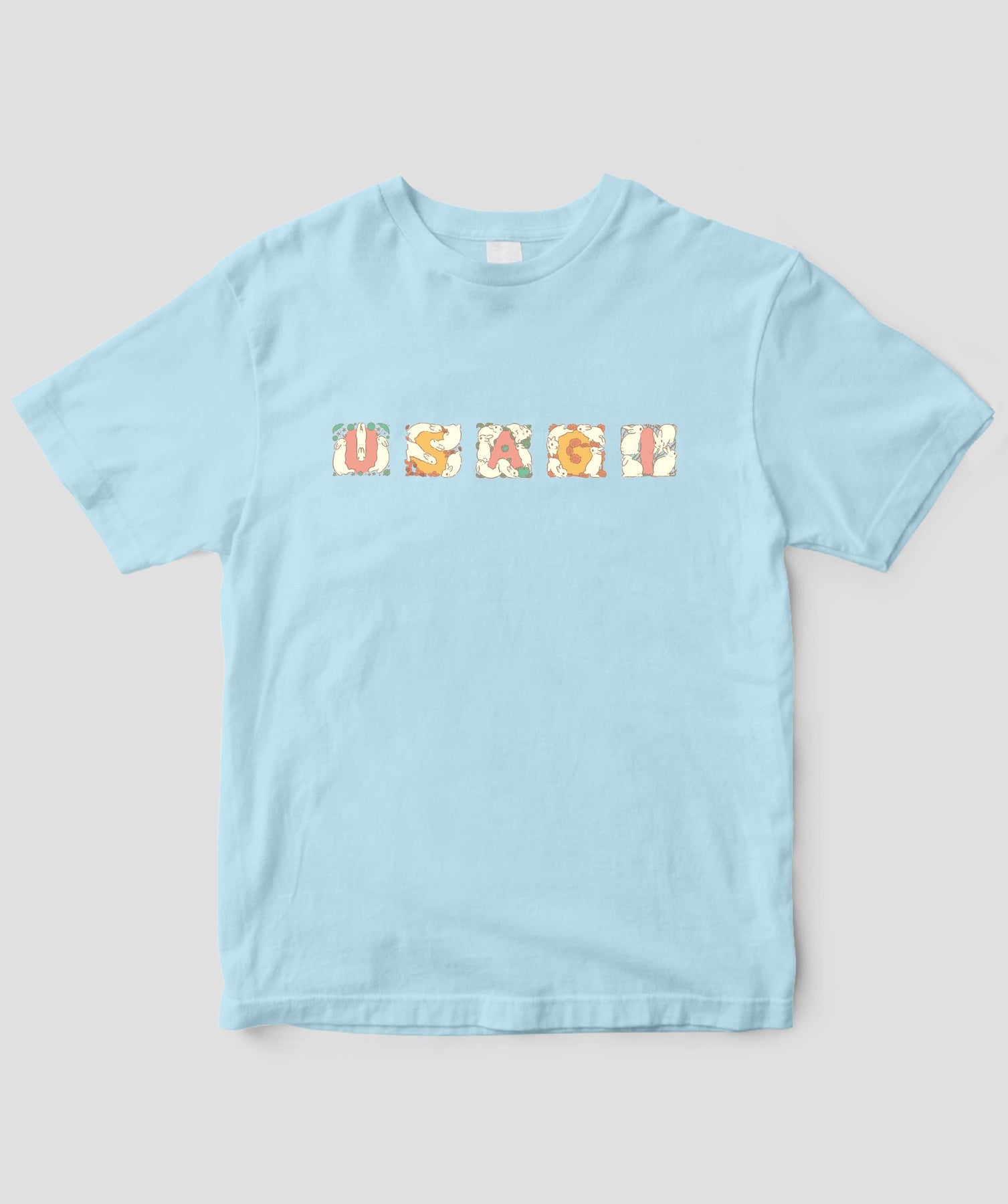 うさぎが集まってできた飾り文字で“USAGI”と綴ったTシャツ。