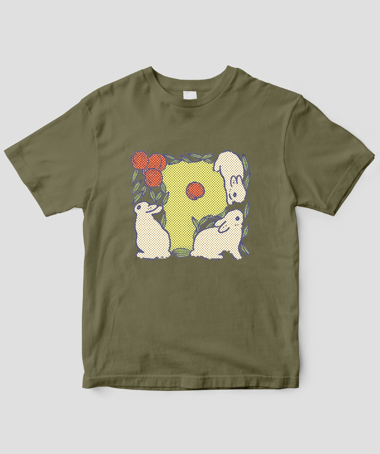 ・濃色Tシャツにはインク定着のため、前処理加工ならびに熱処理(プレス)をしています。シミのようなものや、四角いプレス機の跡が残る場合がありますが、着用前に洗濯していただければ改善されます。