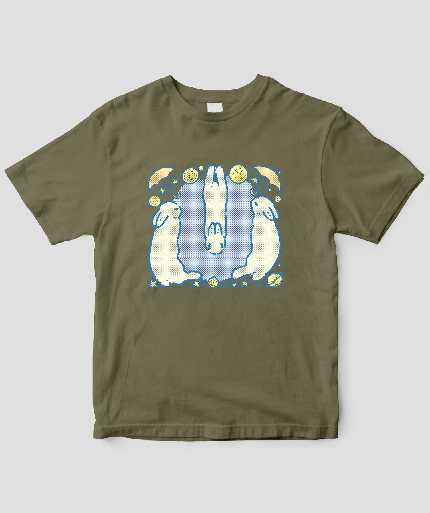 ・濃色Tシャツにはインク定着のため、前処理加工ならびに熱処理(プレス)をしています。シミのようなものや、四角いプレス機の跡が残る場合がありますが、着用前に洗濯していただければ改善されます。