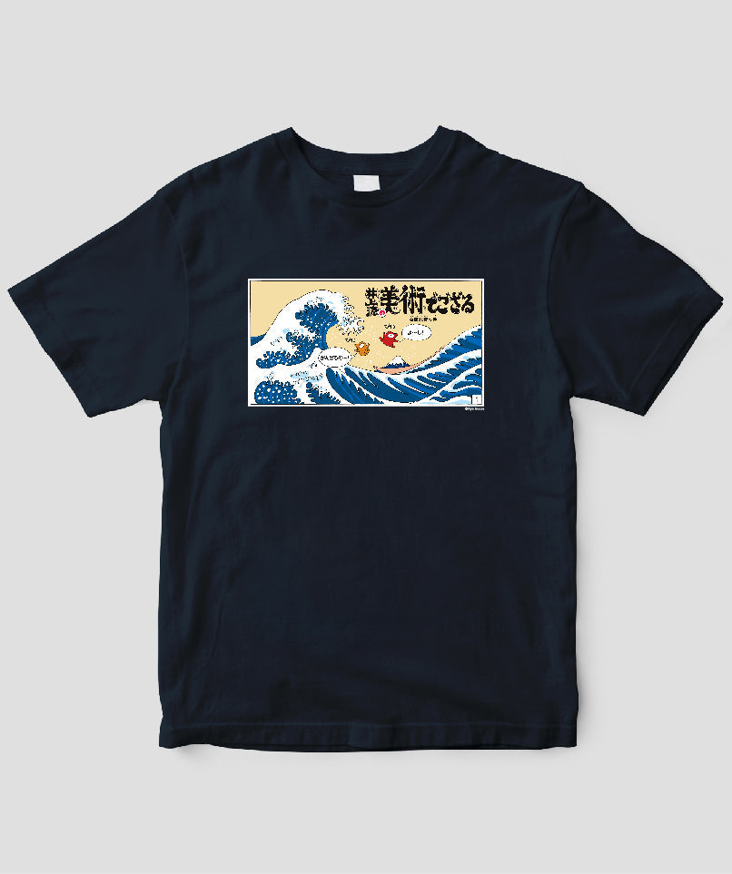 ・濃色Tシャツにはインク定着のため、前処理加工ならびに熱処理(プレス)をしています。シミのようなものや、四角いプレス機の跡が残る場合がありますが、着用前に洗濯していただければ改善されます。
