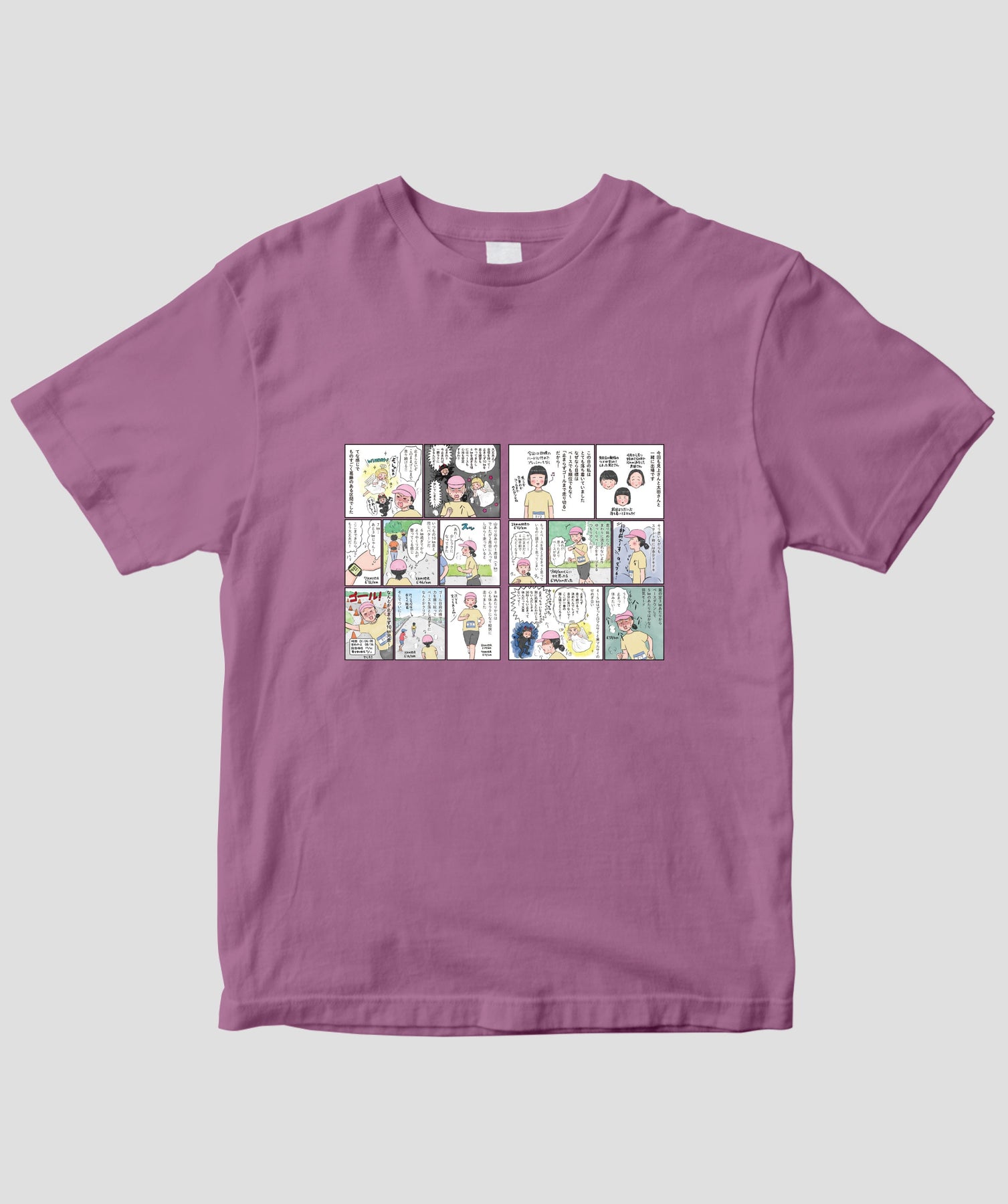 ・濃色Tシャツにはインク定着のため、前処理加工ならびに熱処理(プレス)をしています。シミのようなものや、四角いプレス機の跡が残る場合がありますが、着用前に洗濯していただければ改善されます。