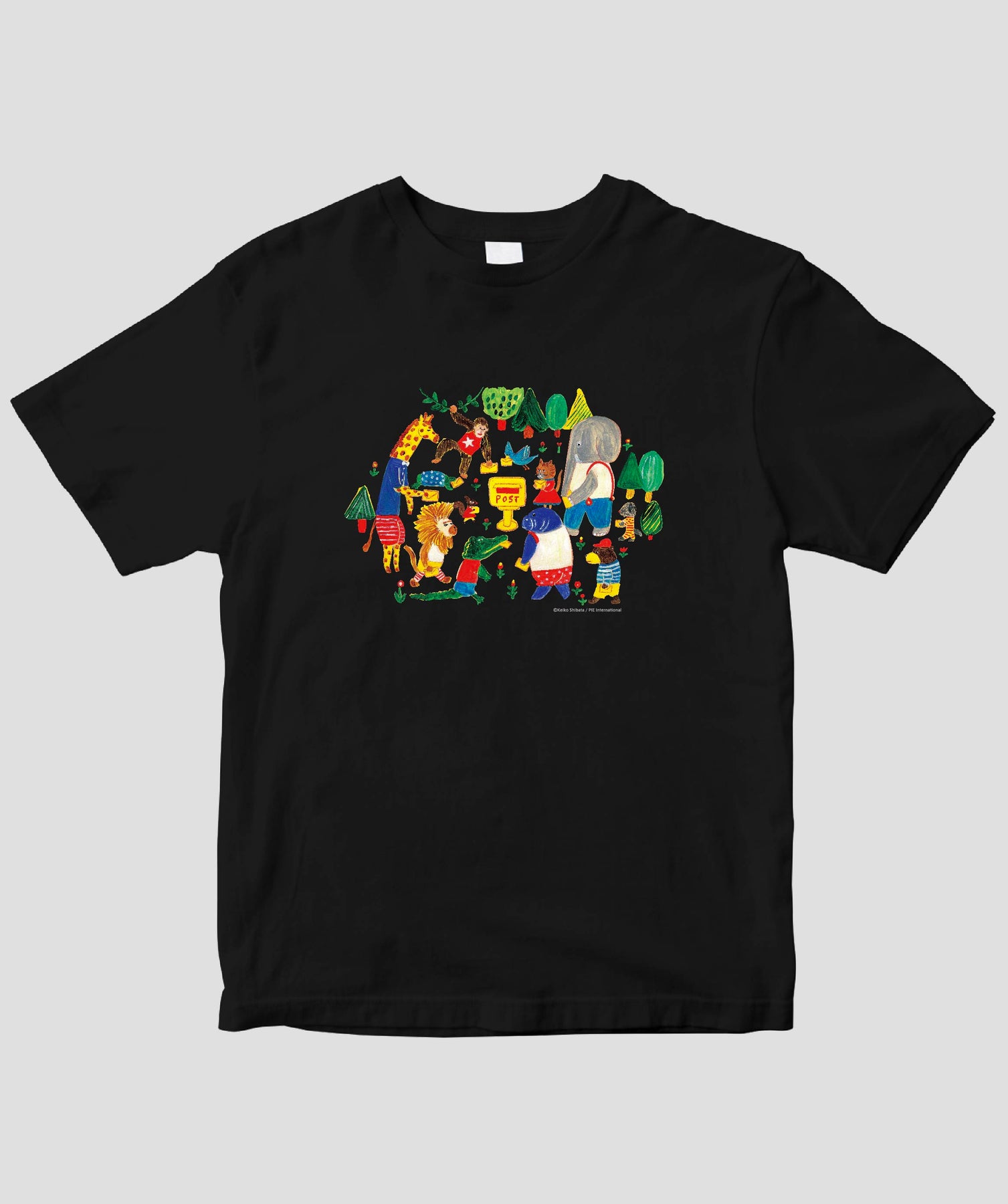 ・濃色Tシャツにはインク定着のため、前処理加工ならびに熱処理(プレス)をしています。シミのようなものや、四角いプレス機の跡が残る場合がありますが、着用前に洗濯していただければ改善されます。