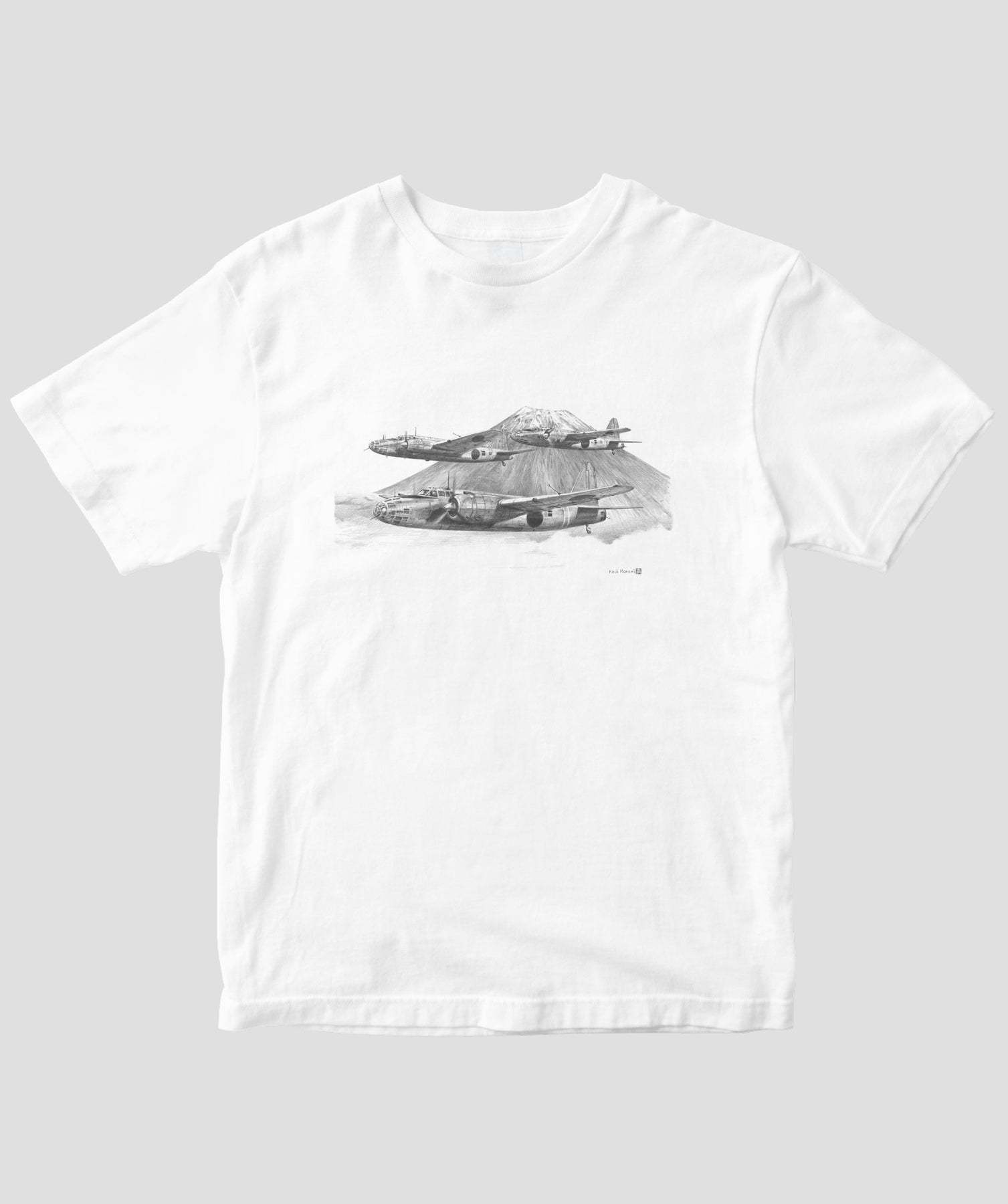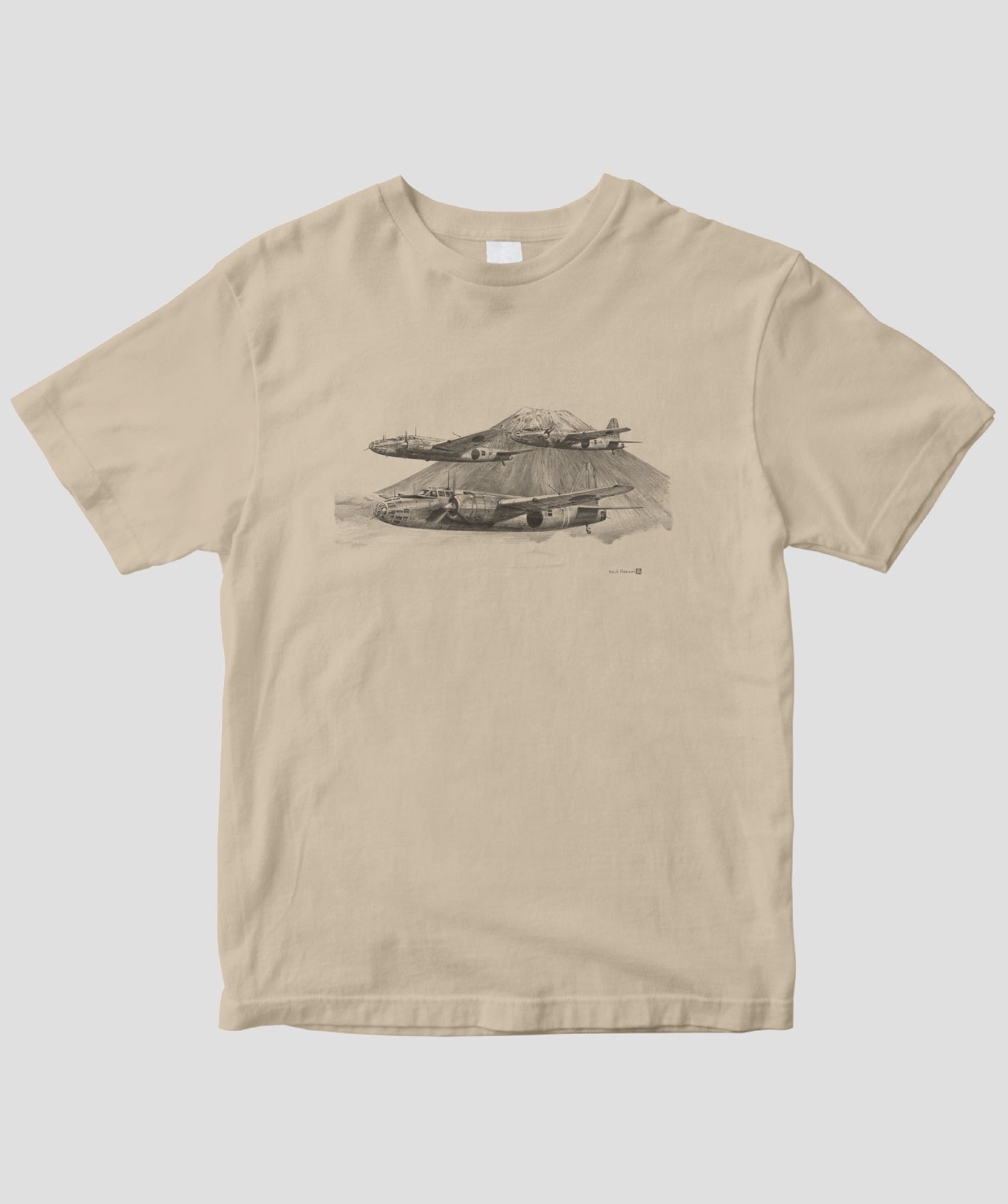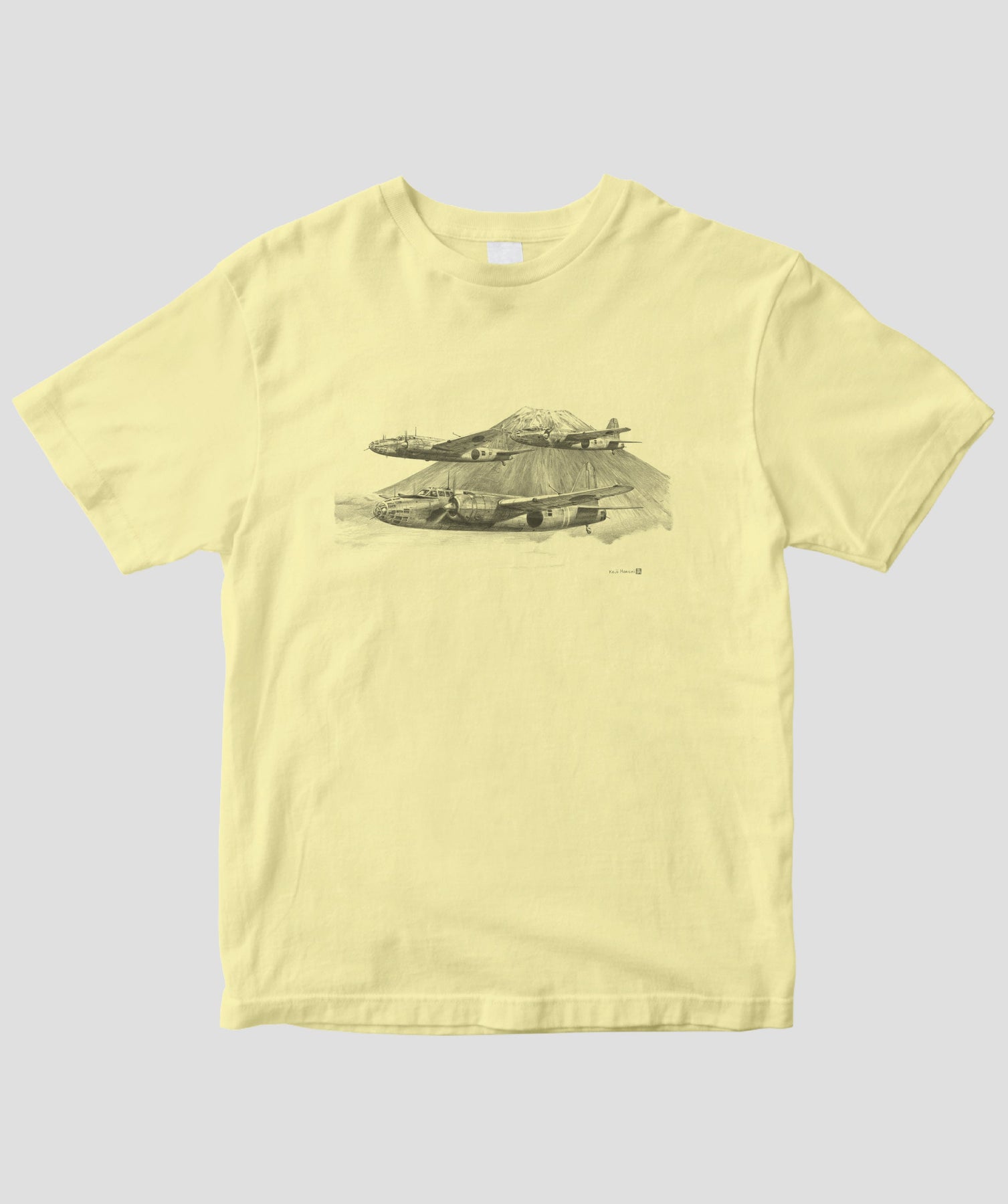 今回は航空イラストレーターとしても知られる航空ジャーナリスト協会常務理事・帆足孝治氏が描いた日本陸海軍機のシックなイラストをTシャツ化しました。