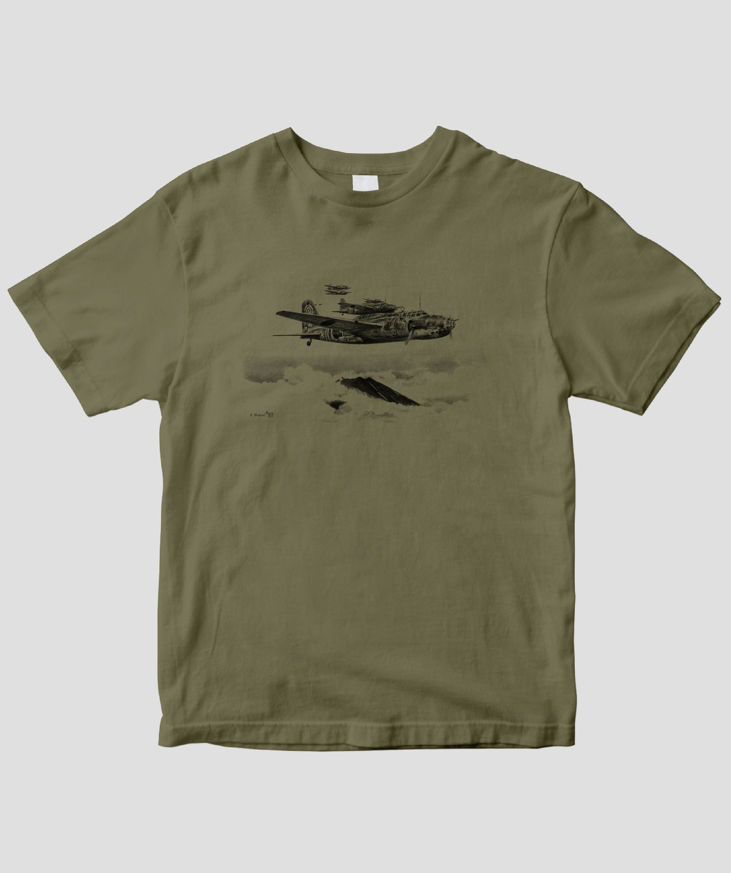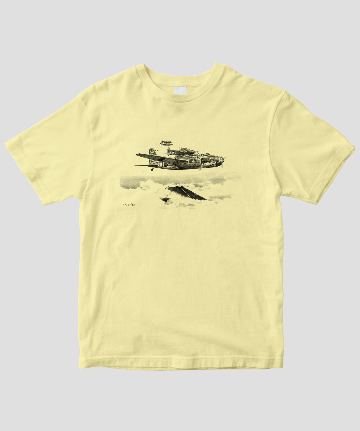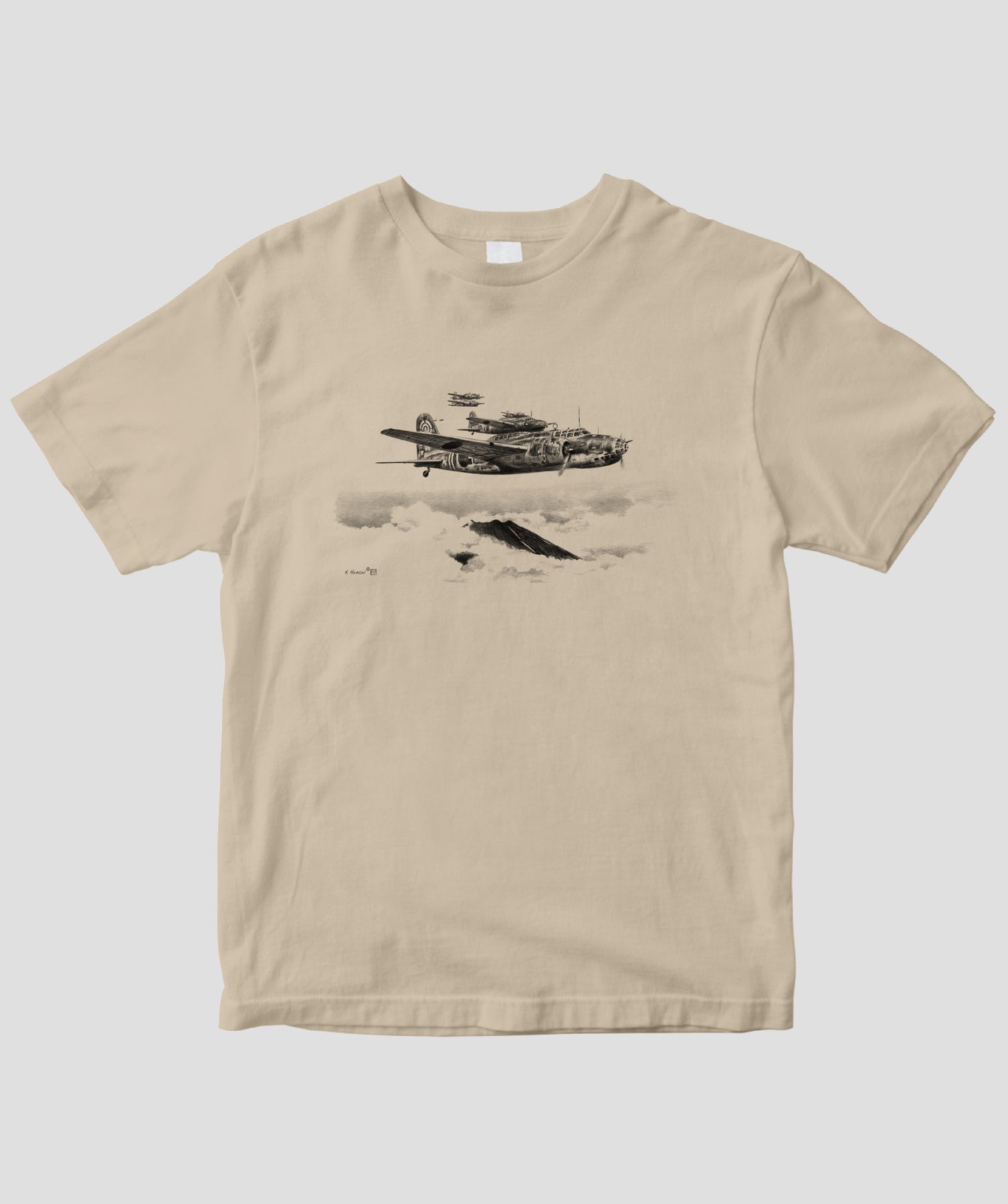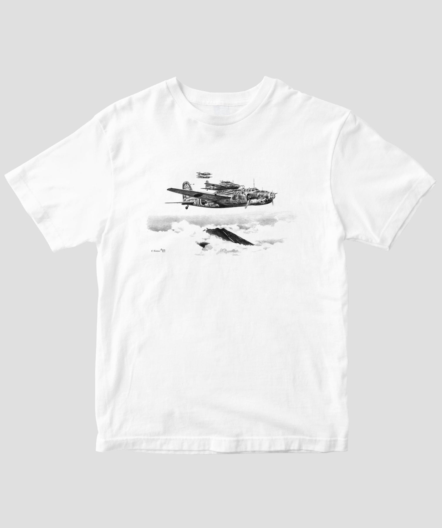 今回は航空イラストレーターとしても知られる航空ジャーナリスト協会常務理事・帆足孝治氏が描いた日本陸海軍機のシックなイラストをTシャツ化しました。