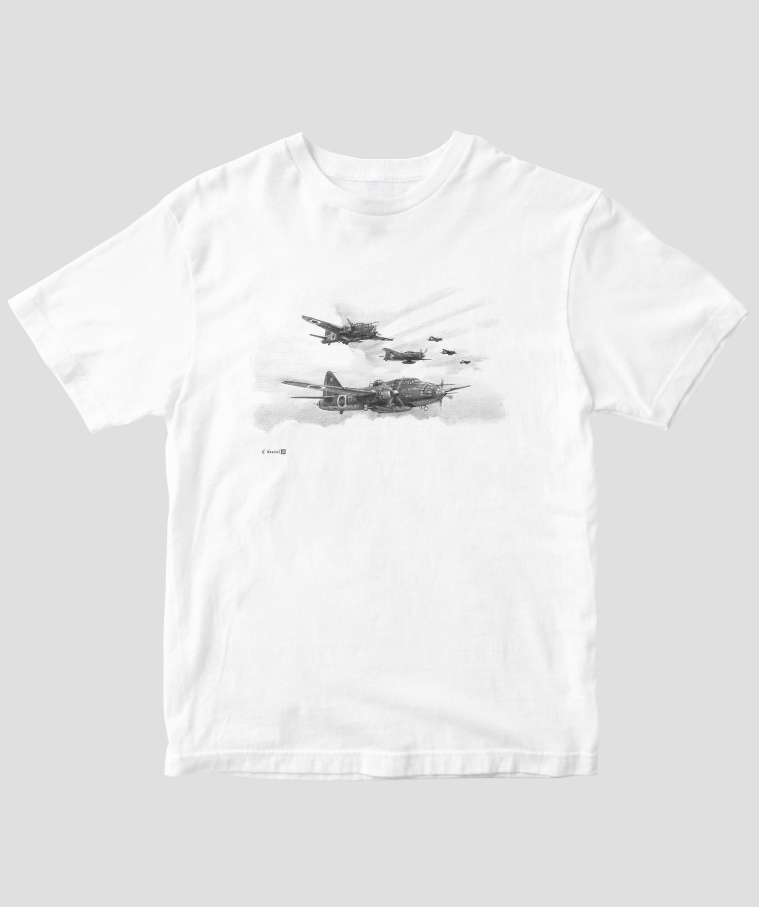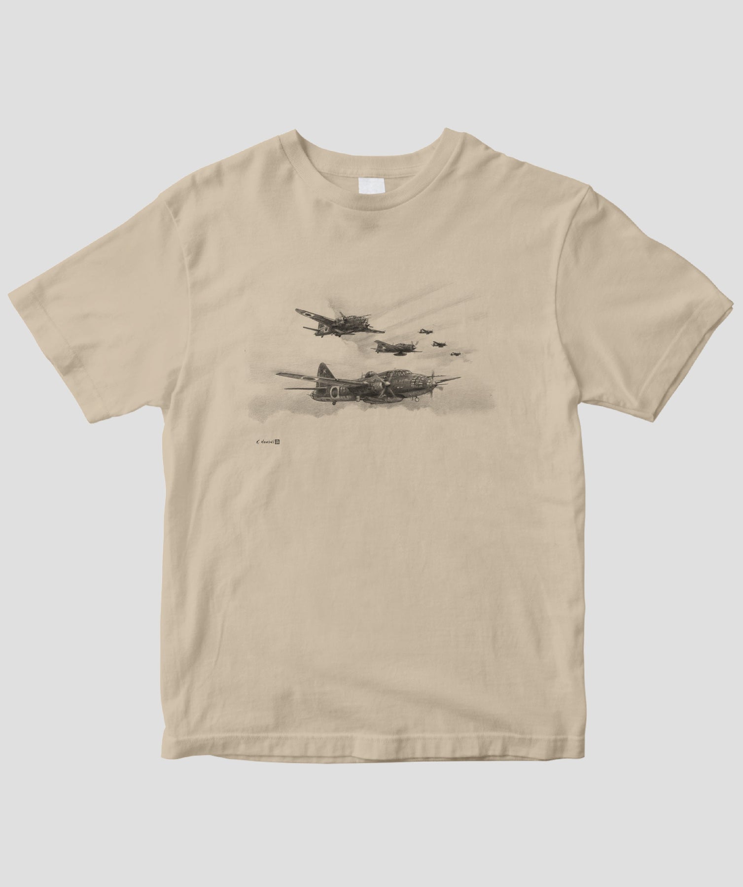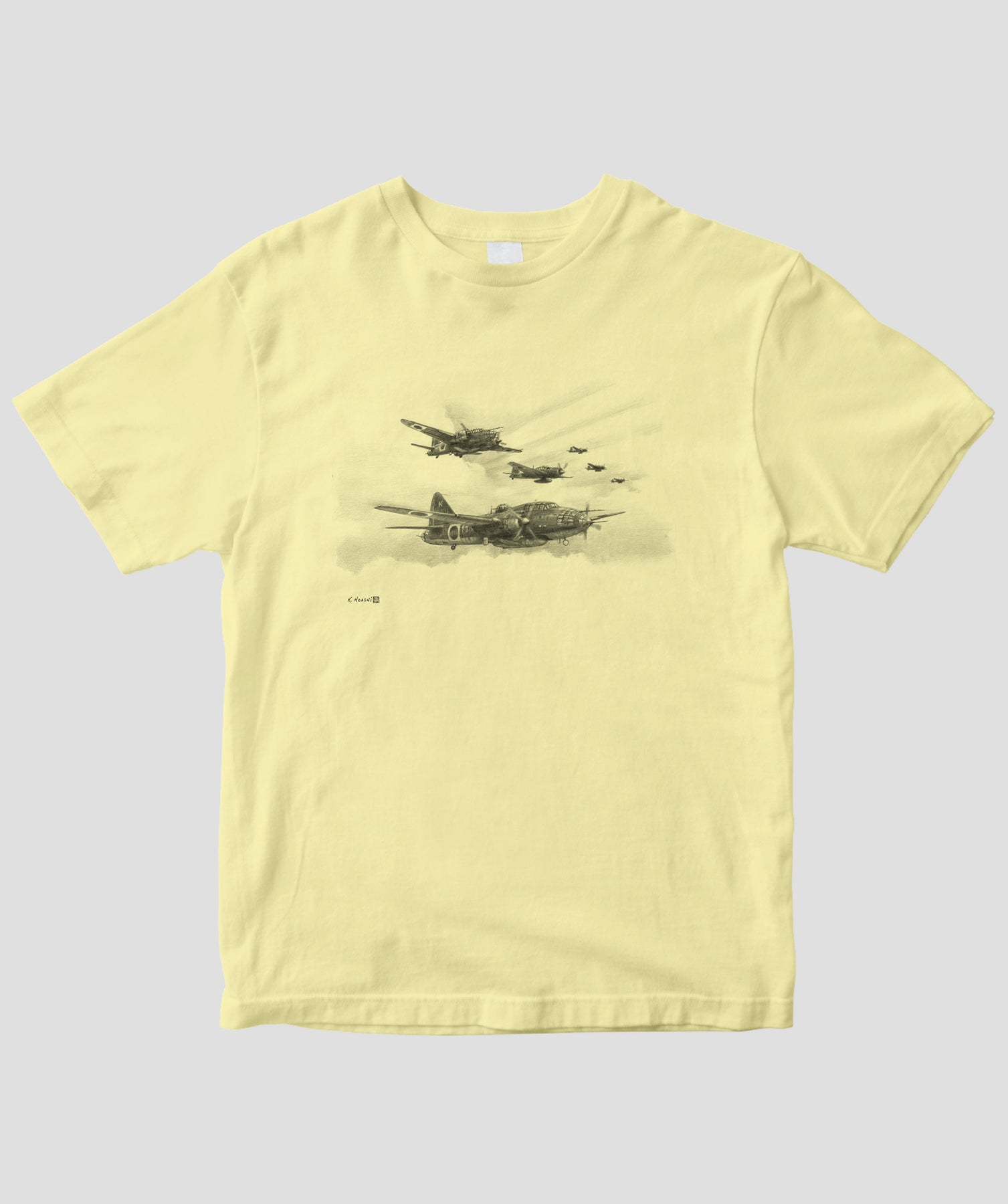今回は航空イラストレーターとしても知られる航空ジャーナリスト協会常務理事・帆足孝治氏が描いた日本陸海軍機のシックなイラストをTシャツ化しました。