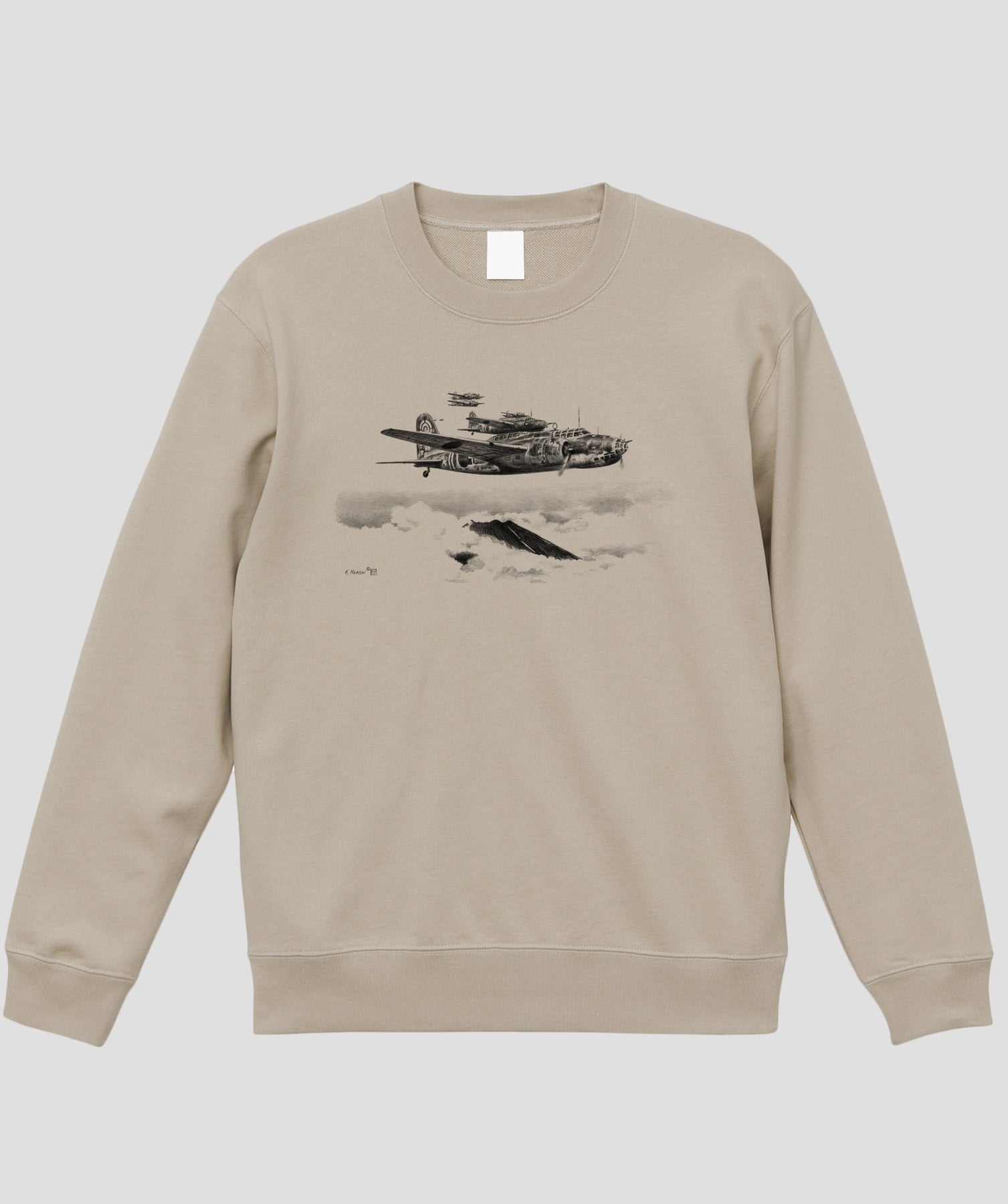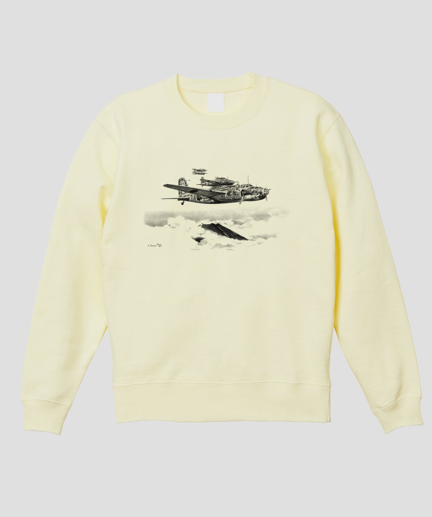 今回は航空イラストレーターとしても知られる航空ジャーナリスト協会常務理事・帆足孝治氏が描いた日本陸海軍機のシックなイラストをスウェット化しました。