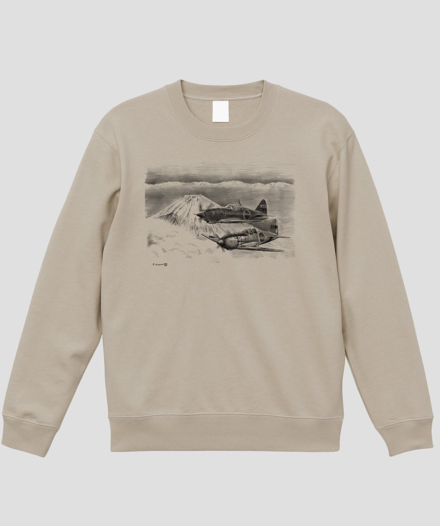 今回は航空イラストレーターとしても知られる航空ジャーナリスト協会常務理事・帆足孝治氏が描いた日本陸海軍機のシックなイラストをスウェット化しました。