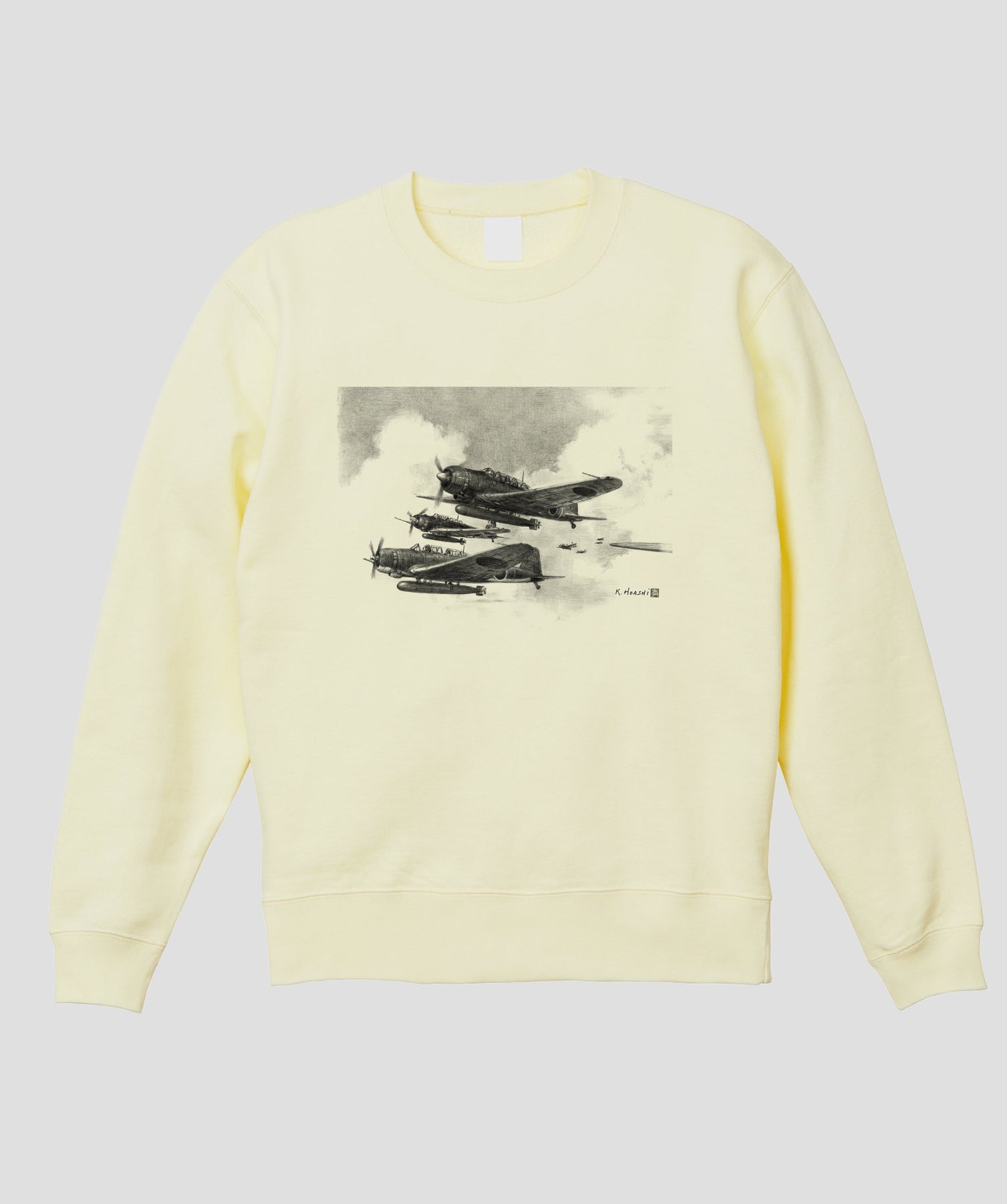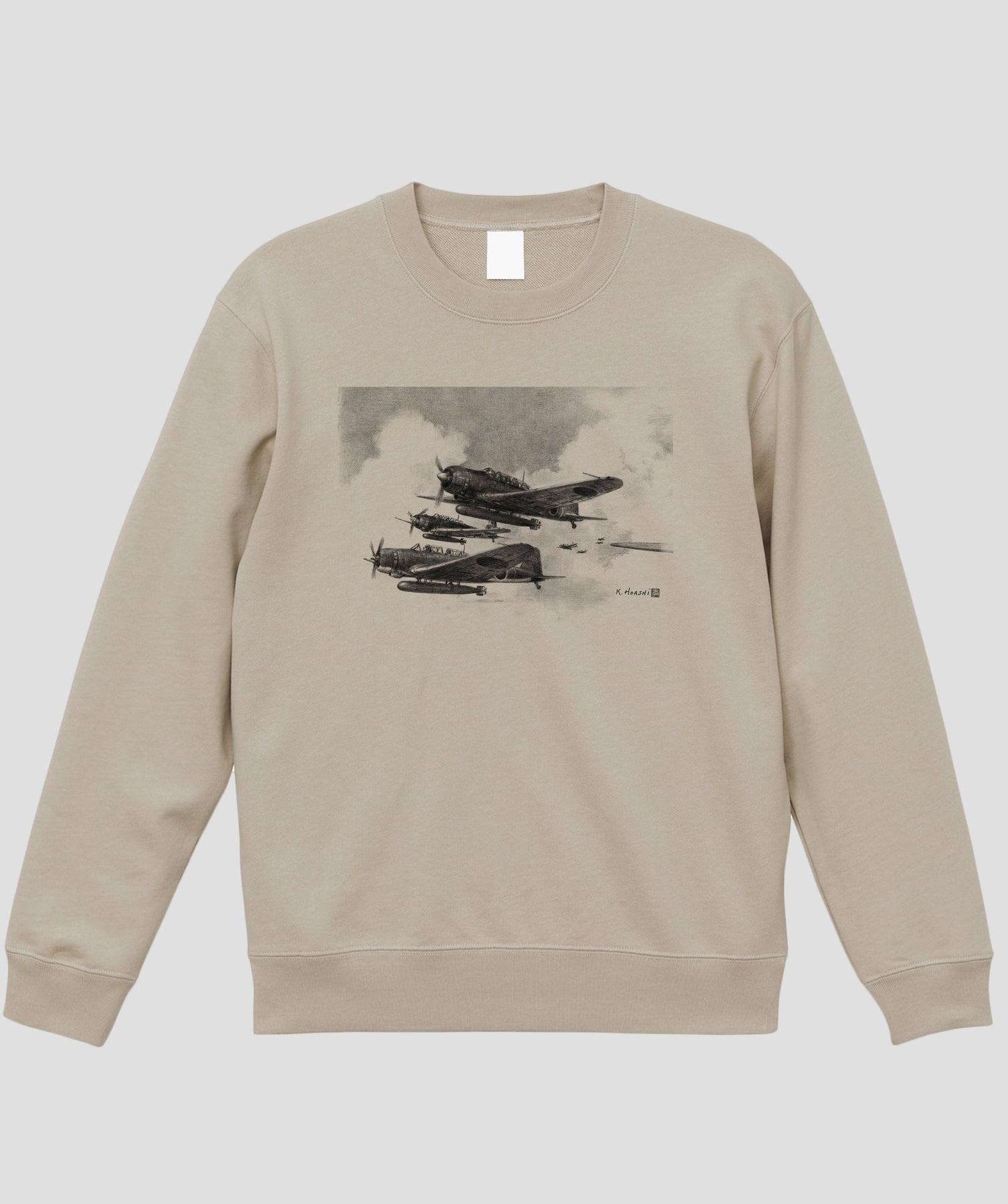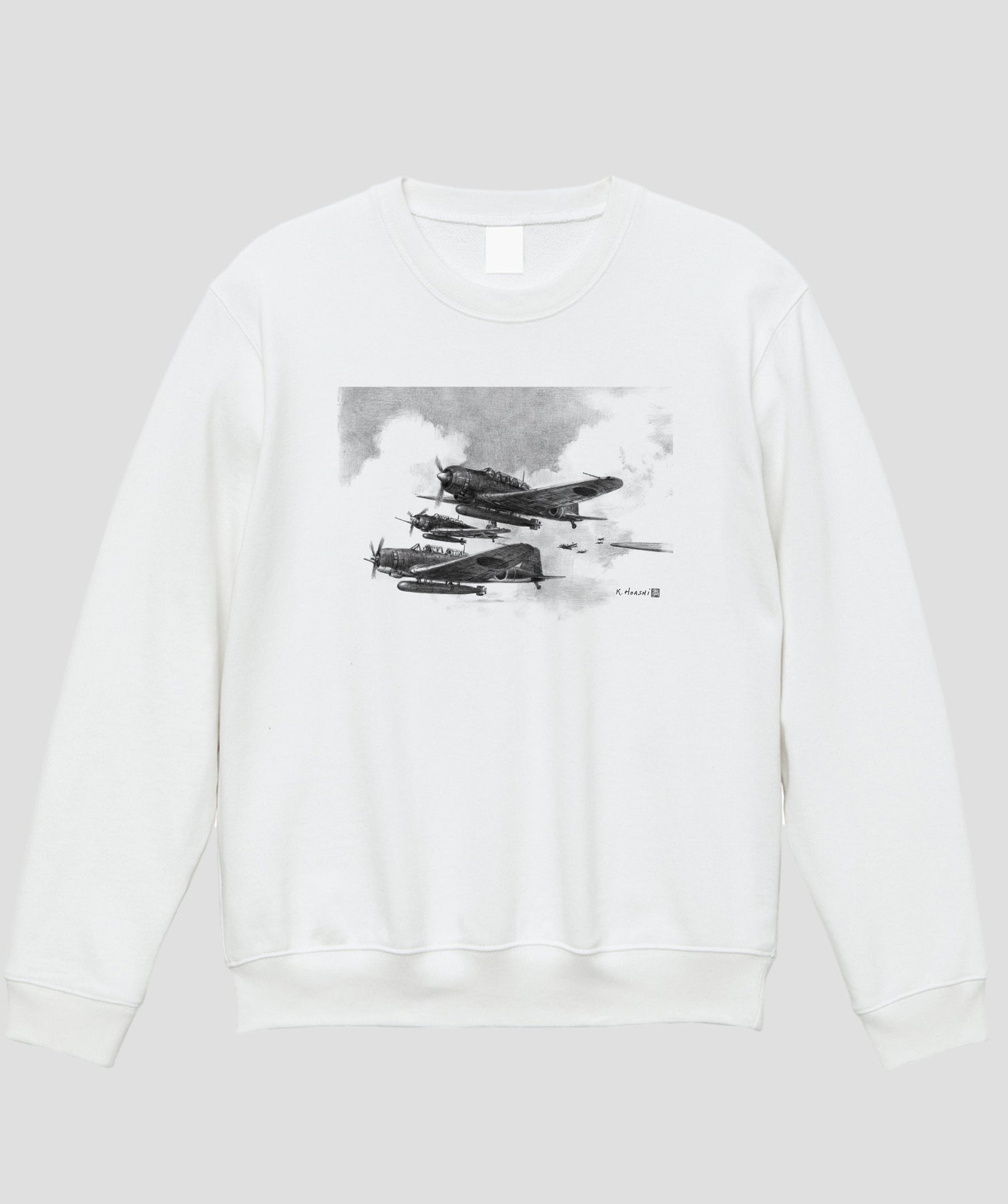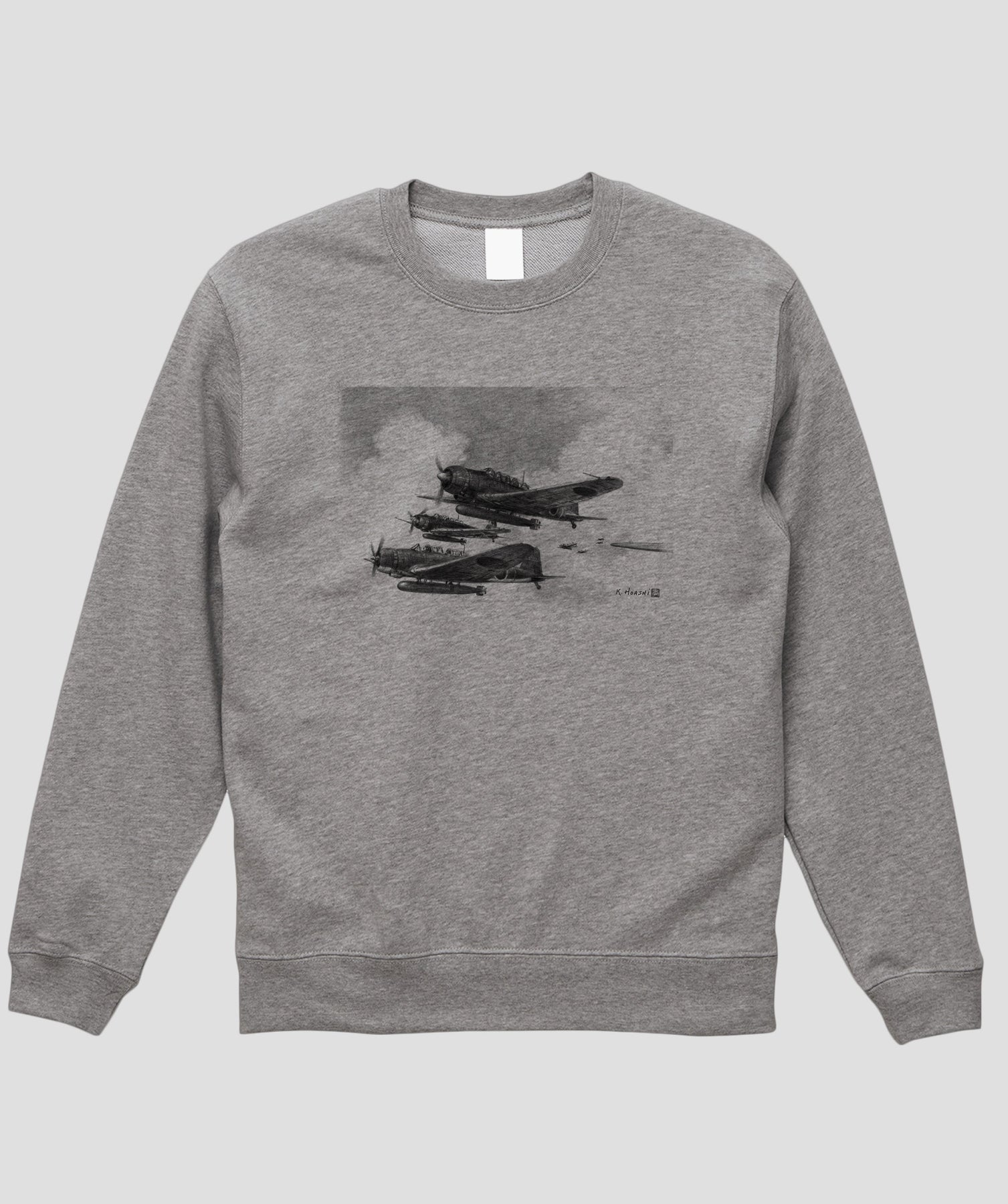 今回は航空イラストレーターとしても知られる航空ジャーナリスト協会常務理事・帆足孝治氏が描いた日本陸海軍機のシックなイラストをスウェット化しました。