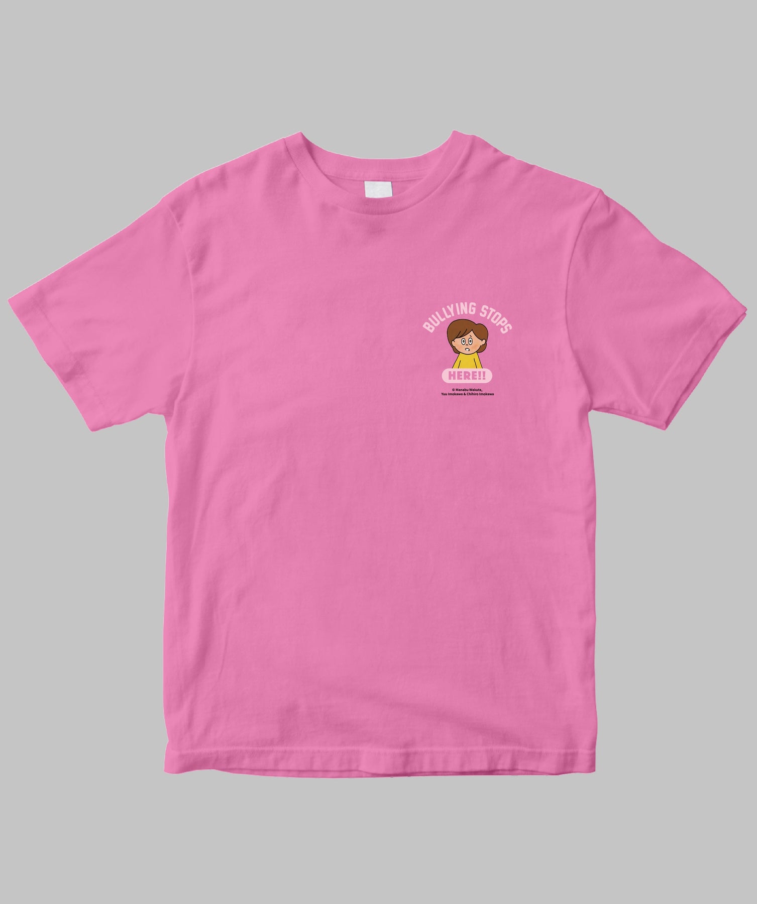 「BULLYING STOPS HERE!!」=「いじめはここで終わり!」という力強いメッセージを込めたTシャツです。日常づかいしやすいワンポイントデザイン。「いじめ反対」の意思を示す活動、ピンクシャツデーの参加にもおすすめです。