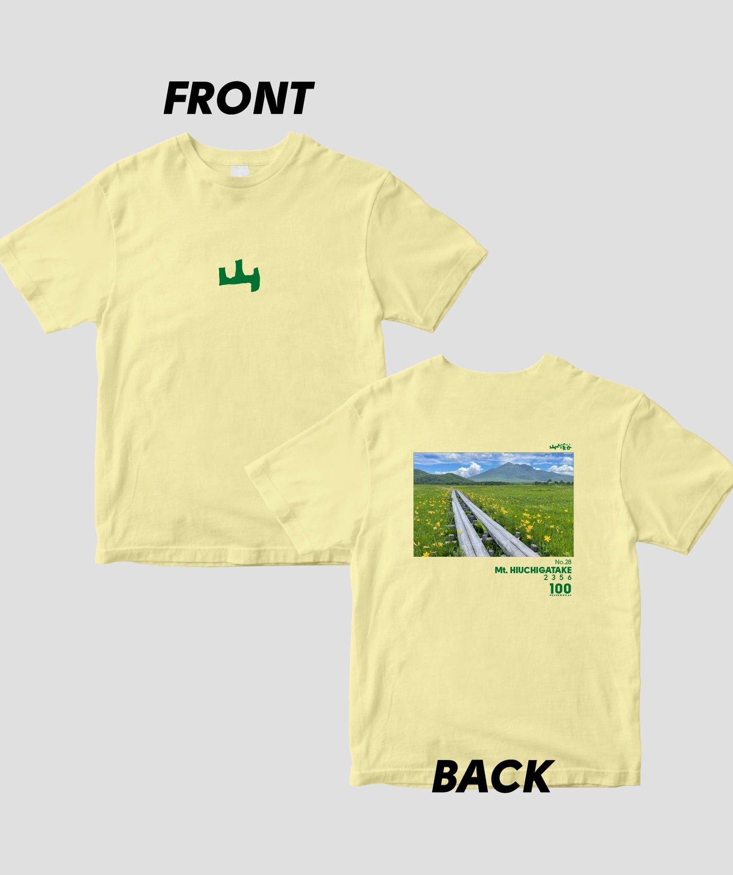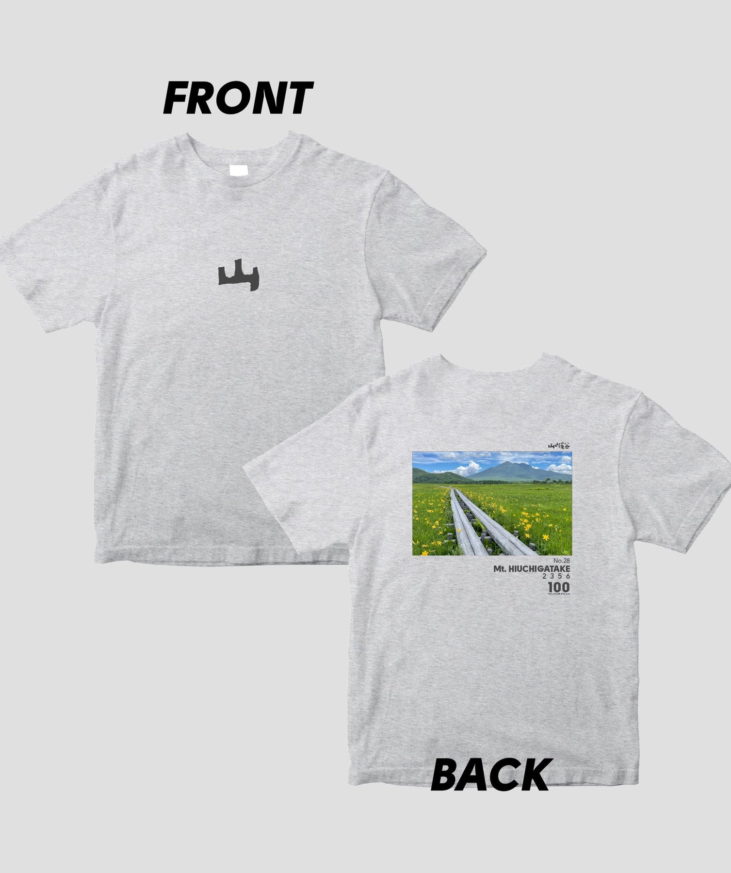 日本百名山に選ばれた100座の写真を背面に入れた、山と溪谷社監修の100種類のTシャツです。