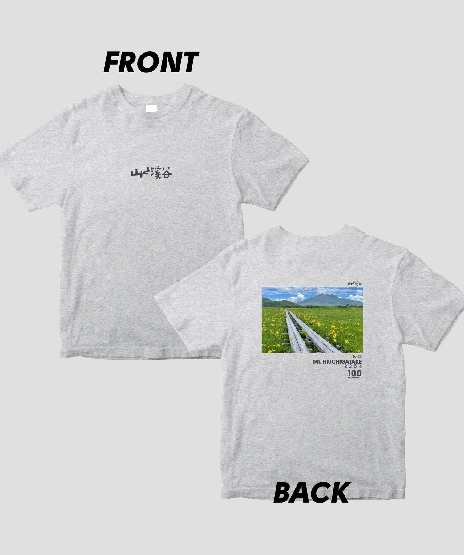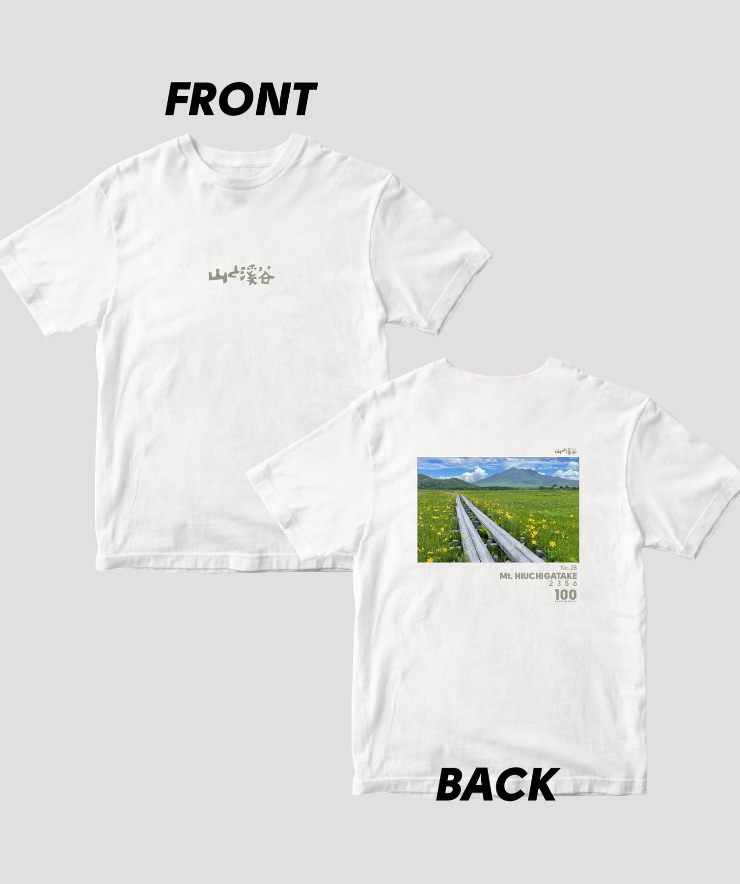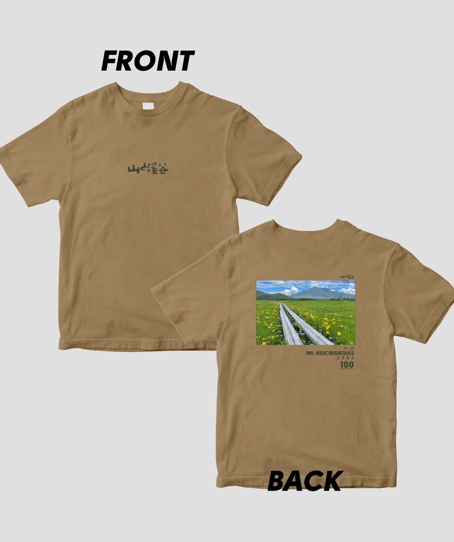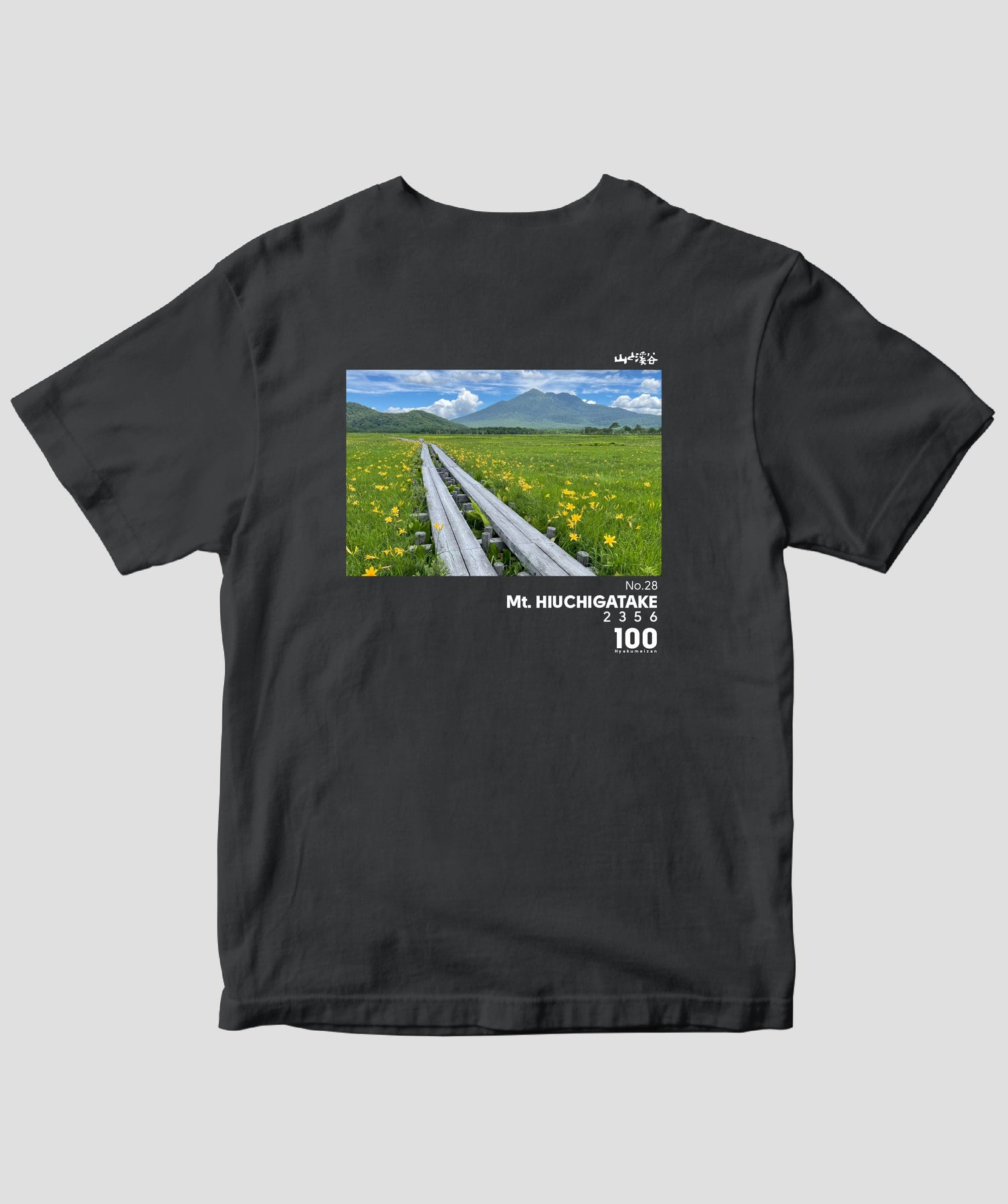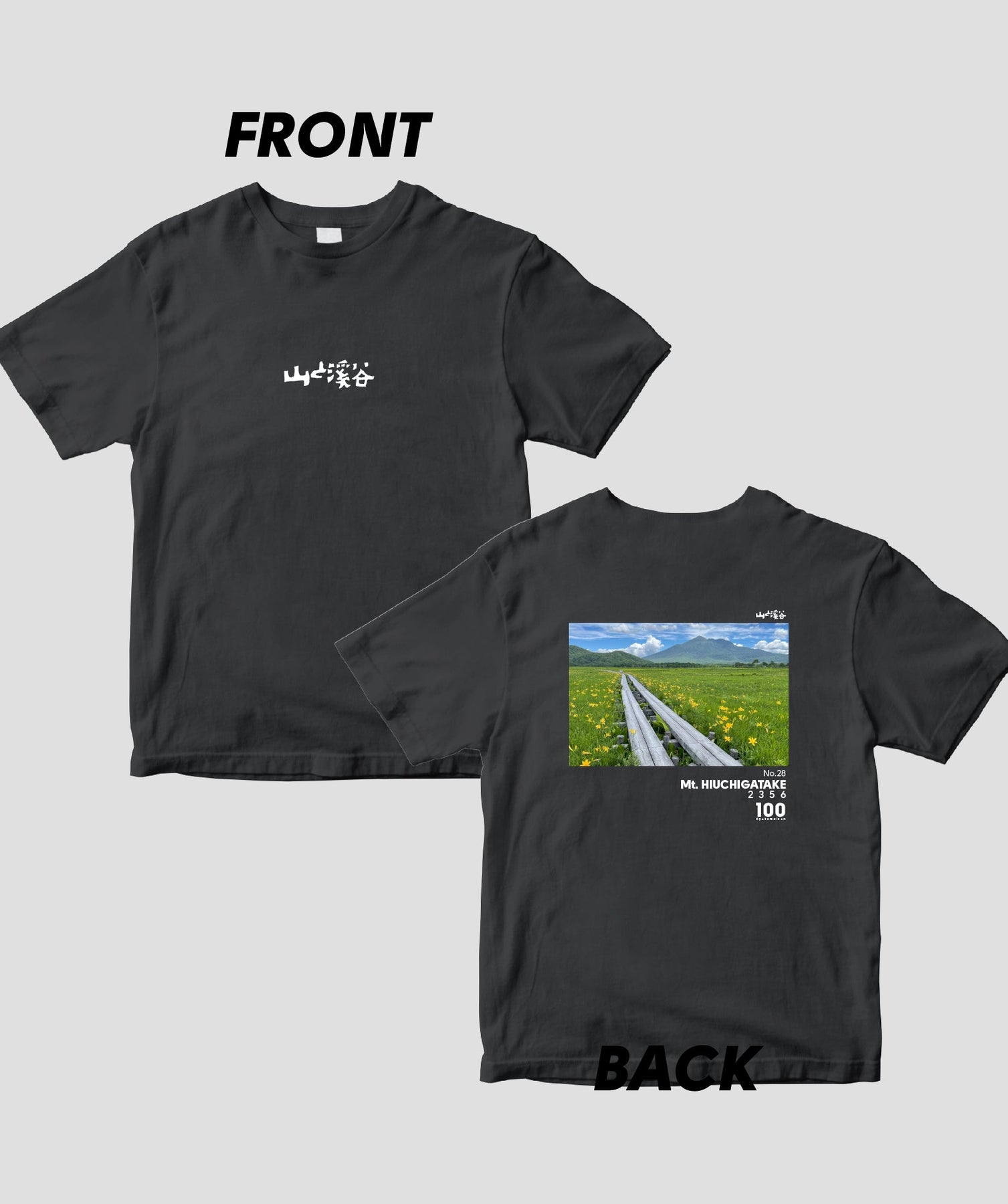 日本百名山に選ばれた100座の写真を背面に入れた、山と溪谷社監修の100種類のTシャツです。